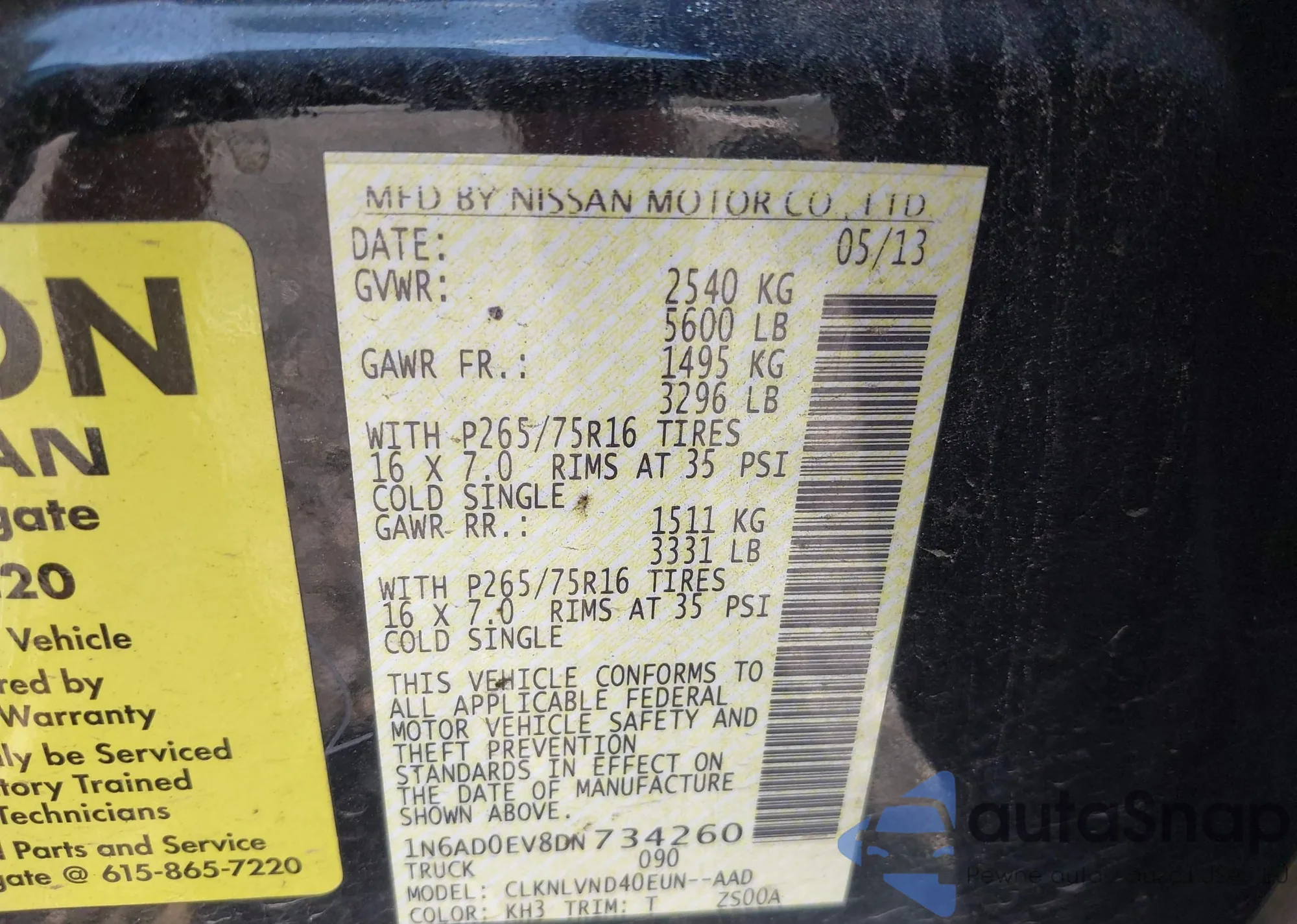 • VIN 1N6AD0EV8DN734260