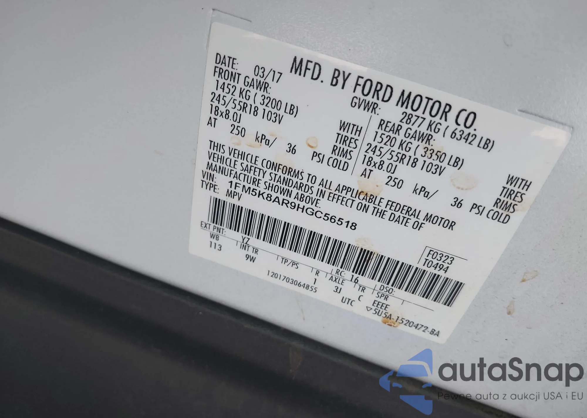 • VIN 1FM5K8AR9HGC56518