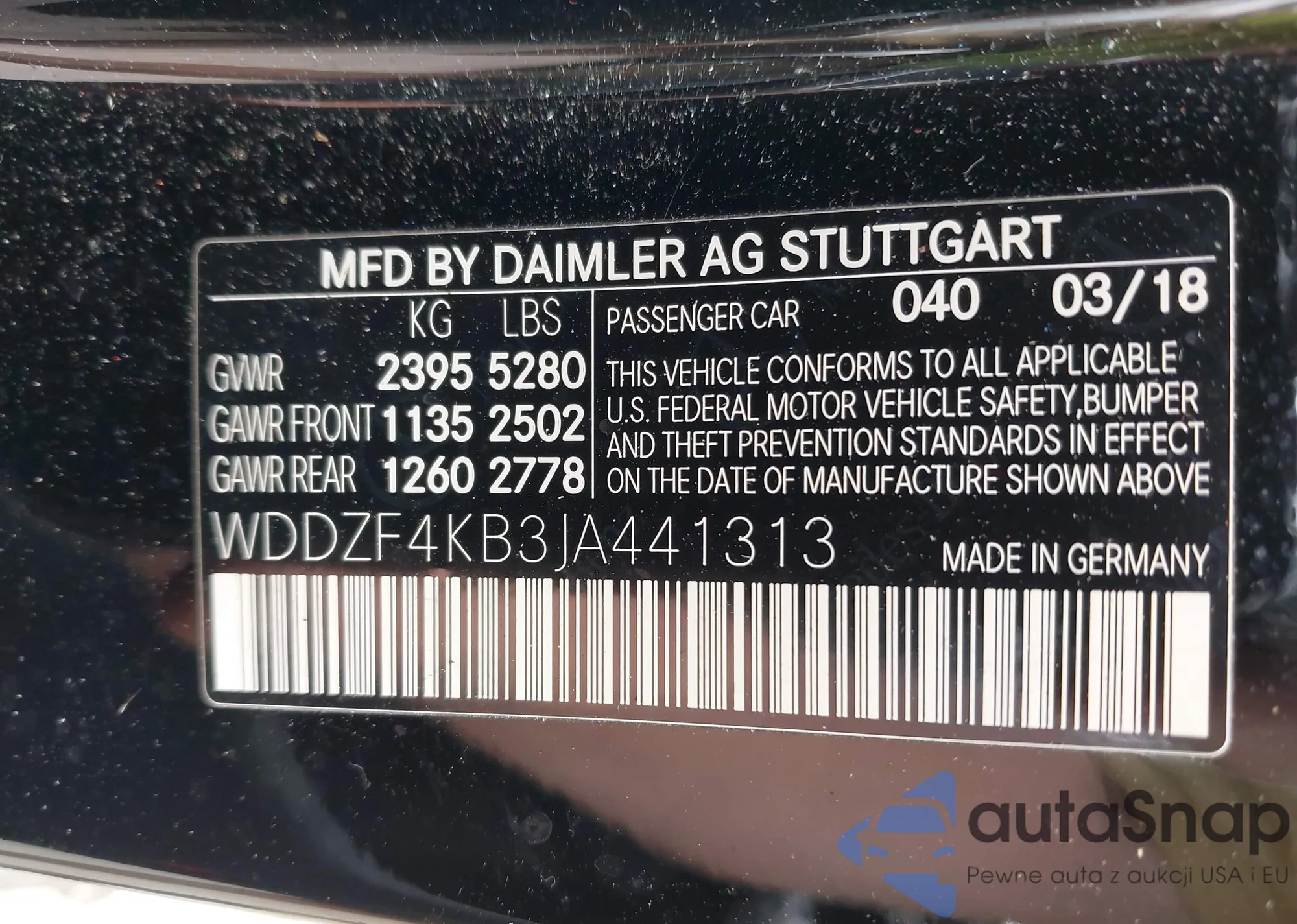 LOT: 42586480 VIN: WDDZF4KB3JA441313