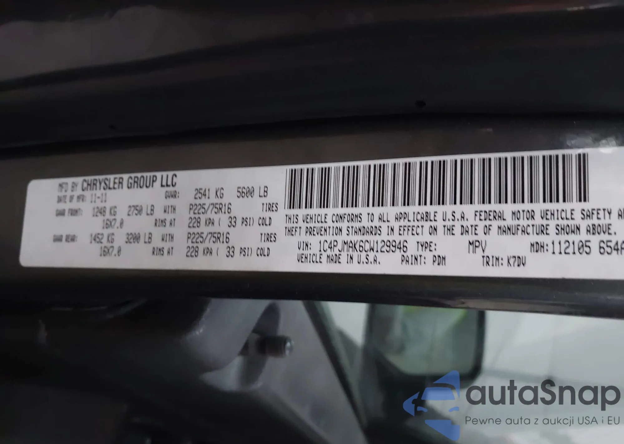 • VIN 1C4PJMAK6CW129946