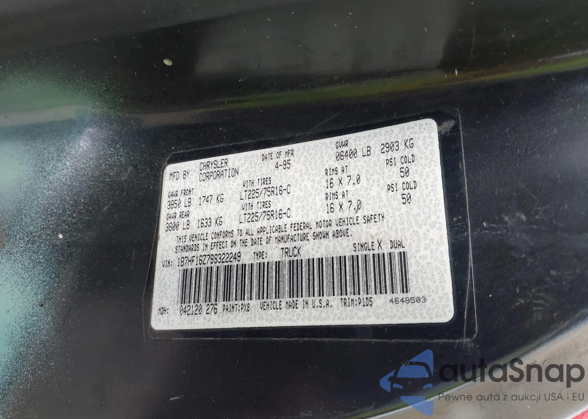 • VIN 1B7HF16Z7SS322249