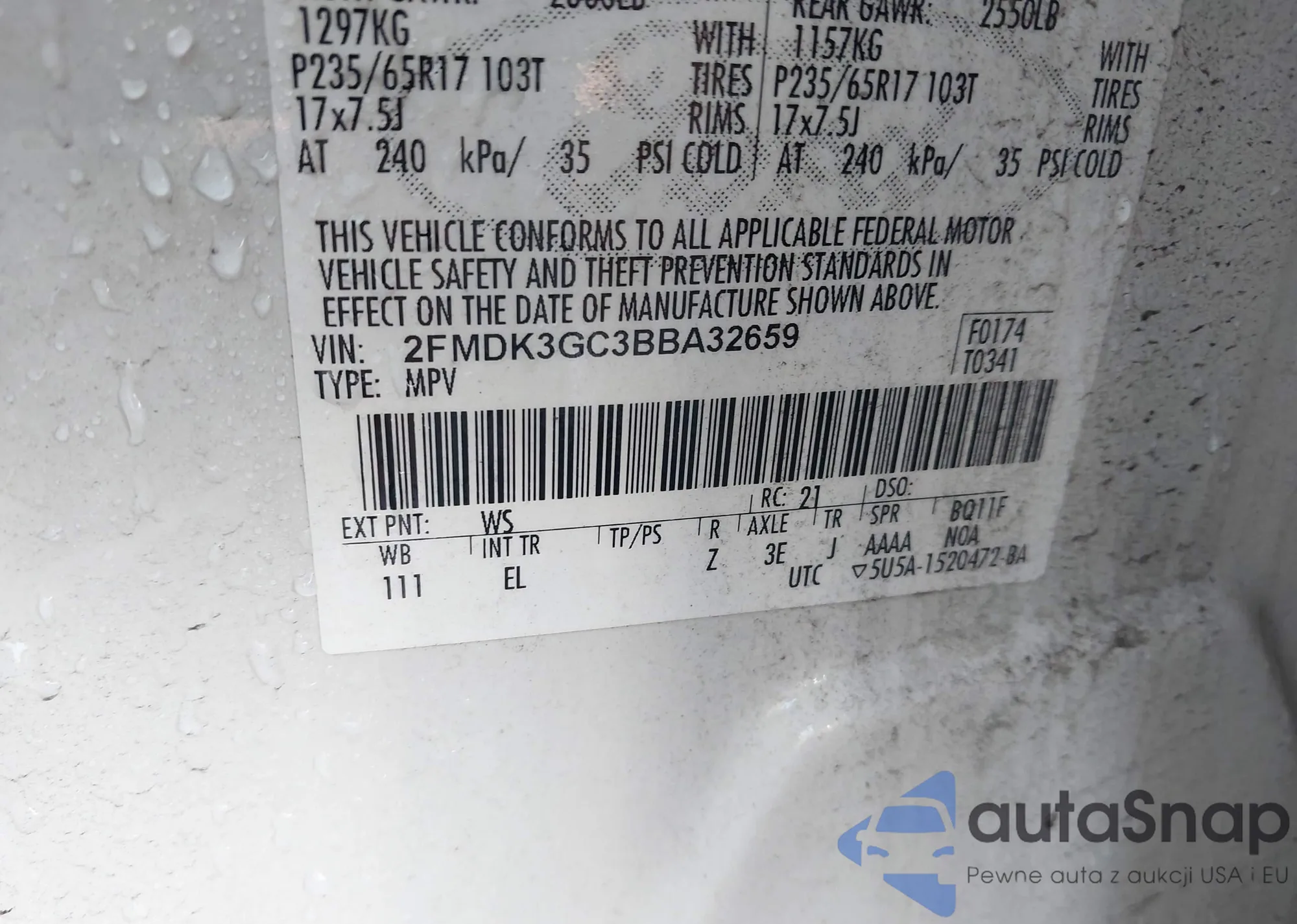 LOT: 42785100 VIN: 2FMDK3GC3BBA32659