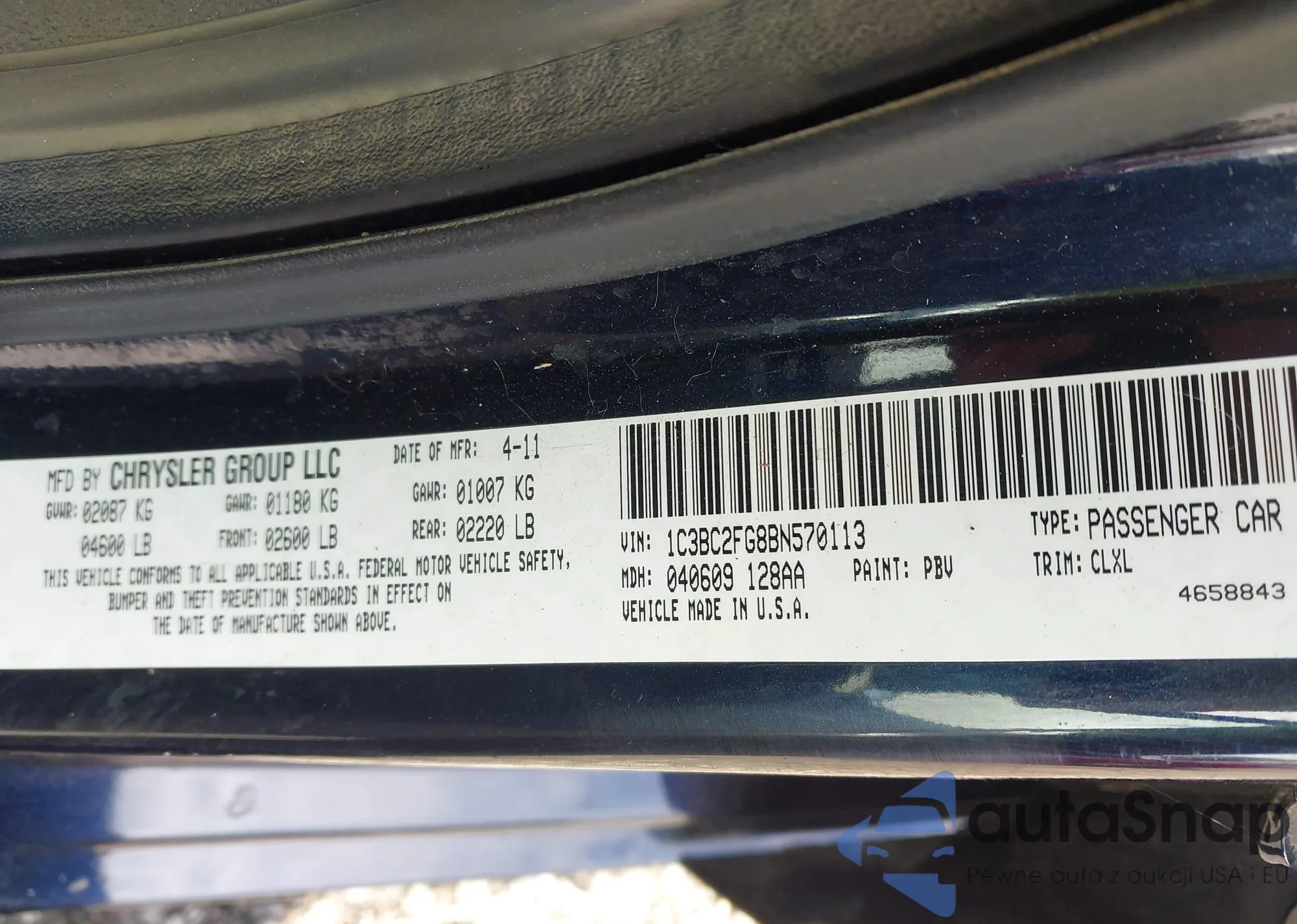 LOT: 42805944 VIN: 1C3BC2FG8BN570113