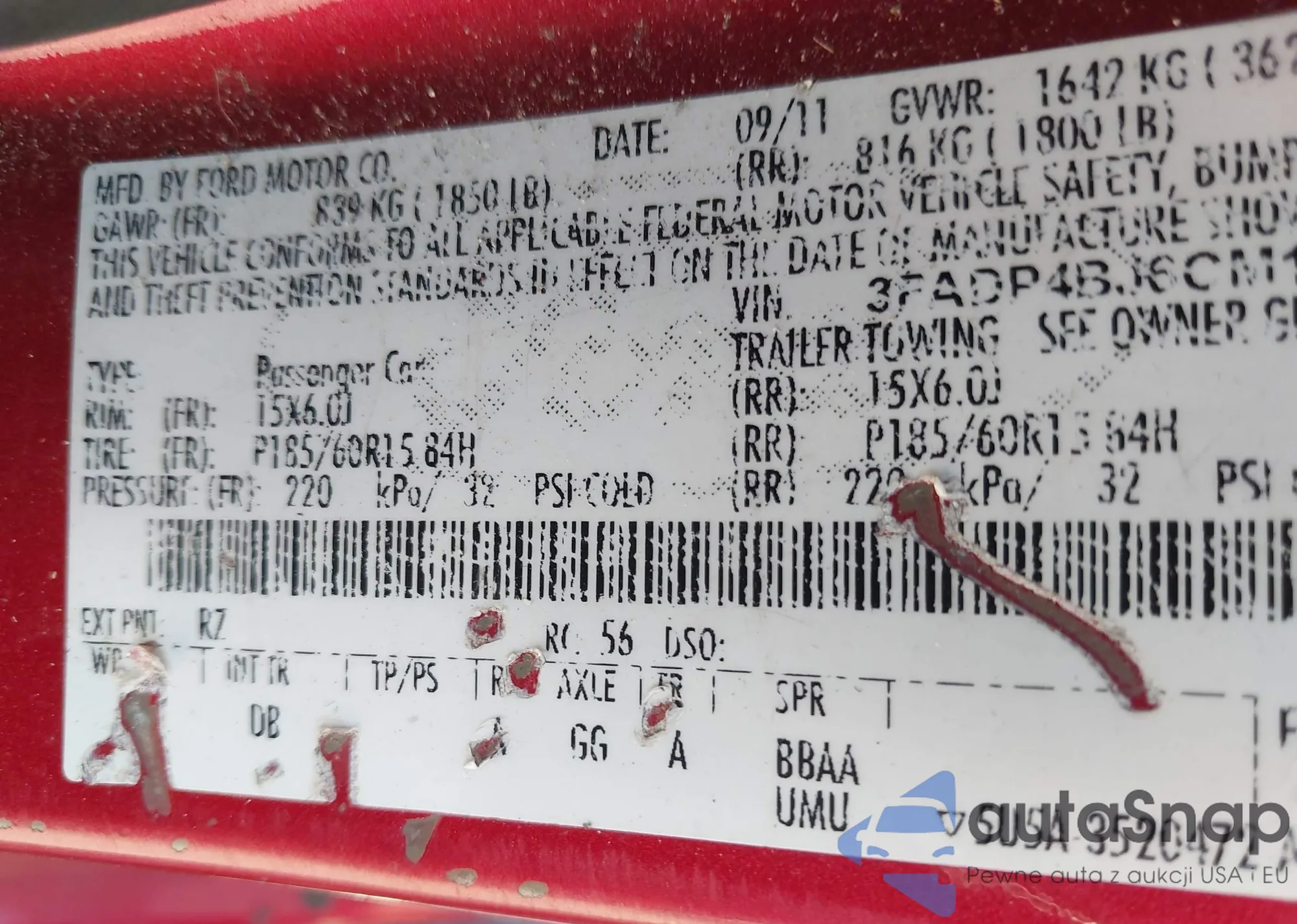 • VIN 3FADP4BJ6CM118345