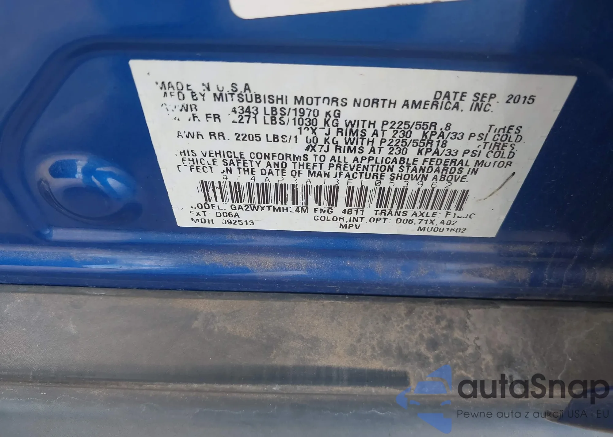 • VIN 4A4AP3AU3FE053962