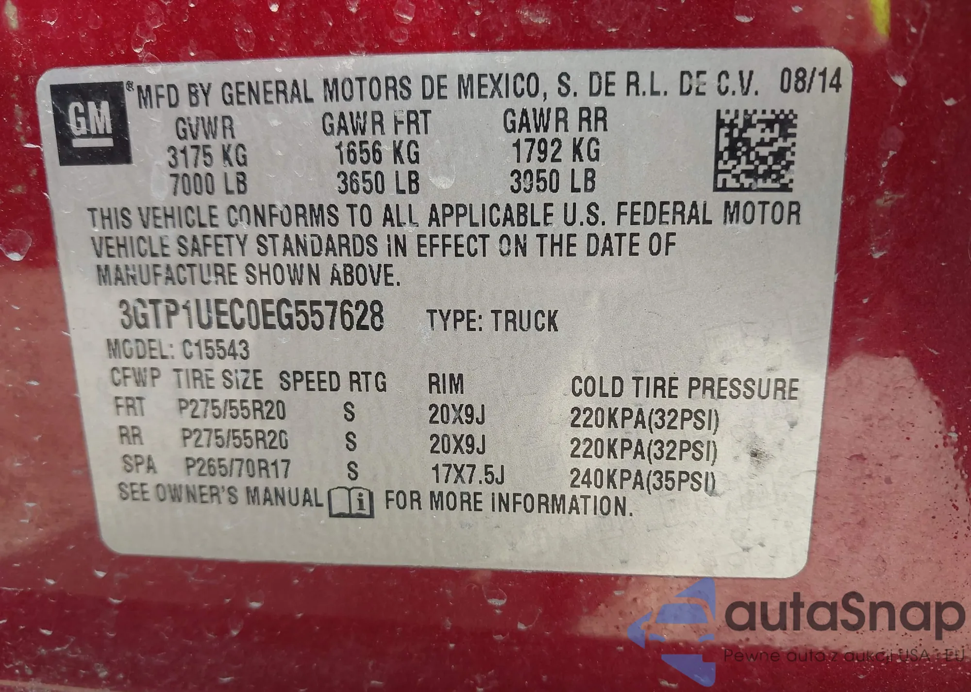 LOT: 43017777 VIN: 3GTP1UEC0EG557628