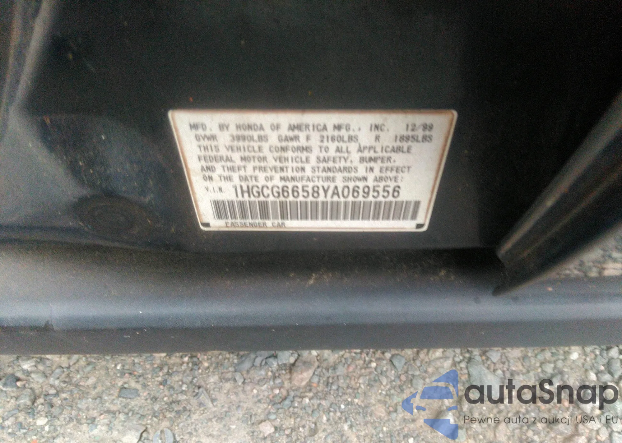 • VIN 1HGCG6658YA069556