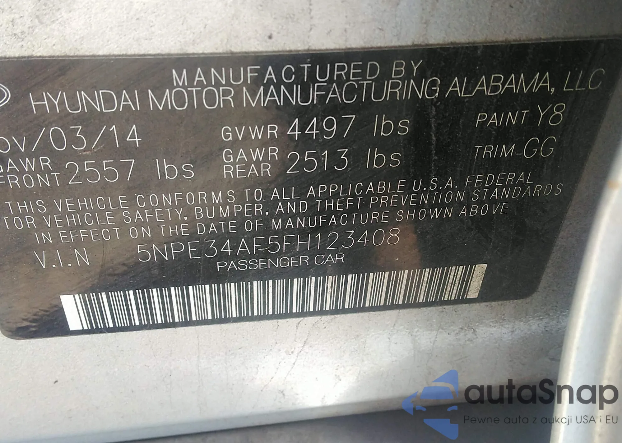 LOT: 41823570 VIN: 5NPE34AF5FH123408