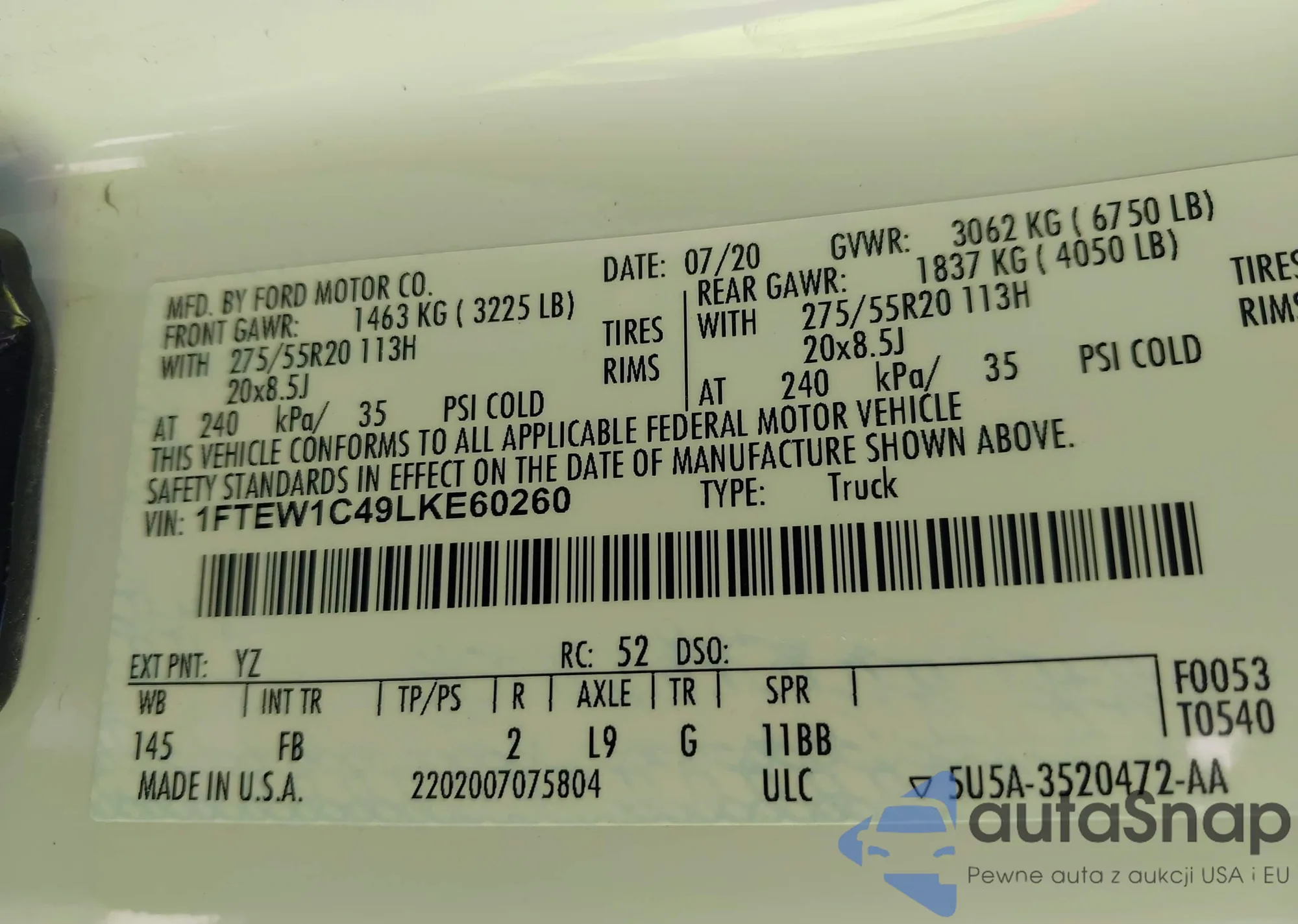 • VIN 1FTEW1C49LKE60260