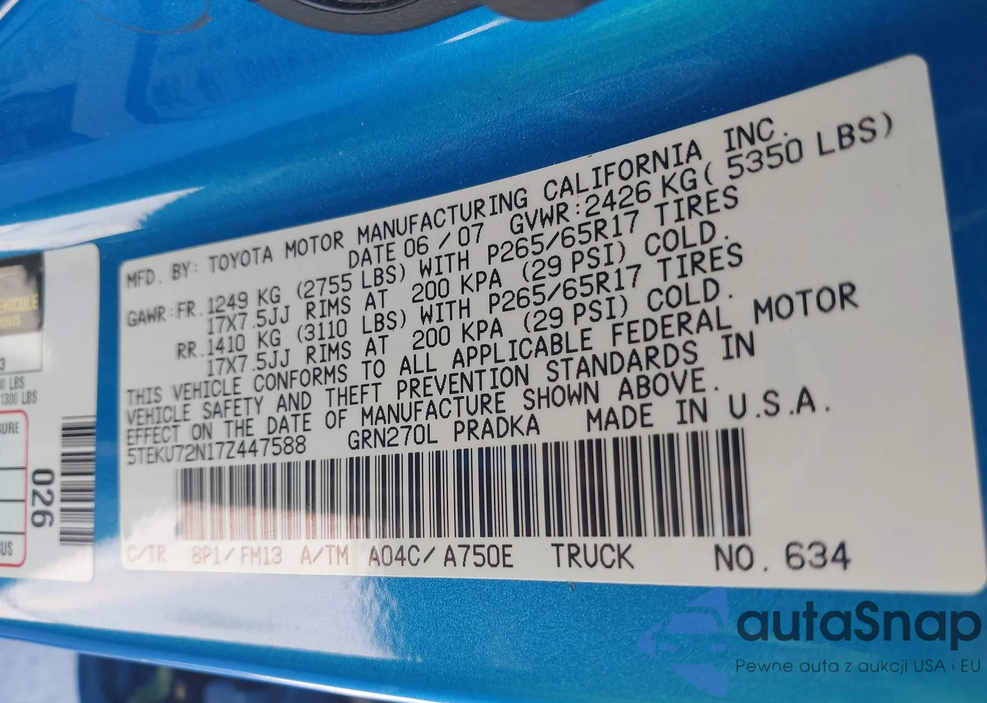 • VIN 5TEKU72N17Z447588