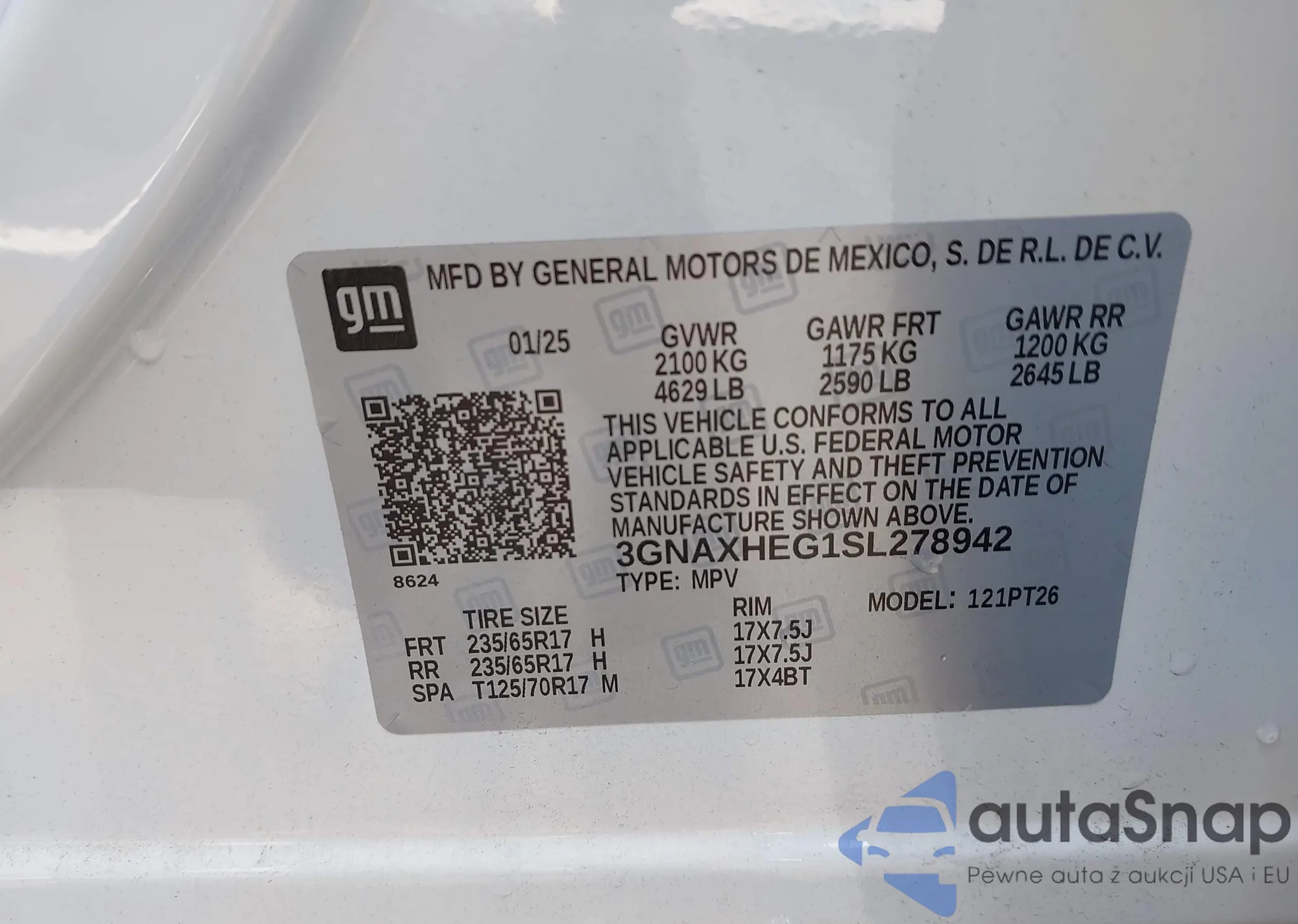• VIN 3GNAXHEG1SL278942