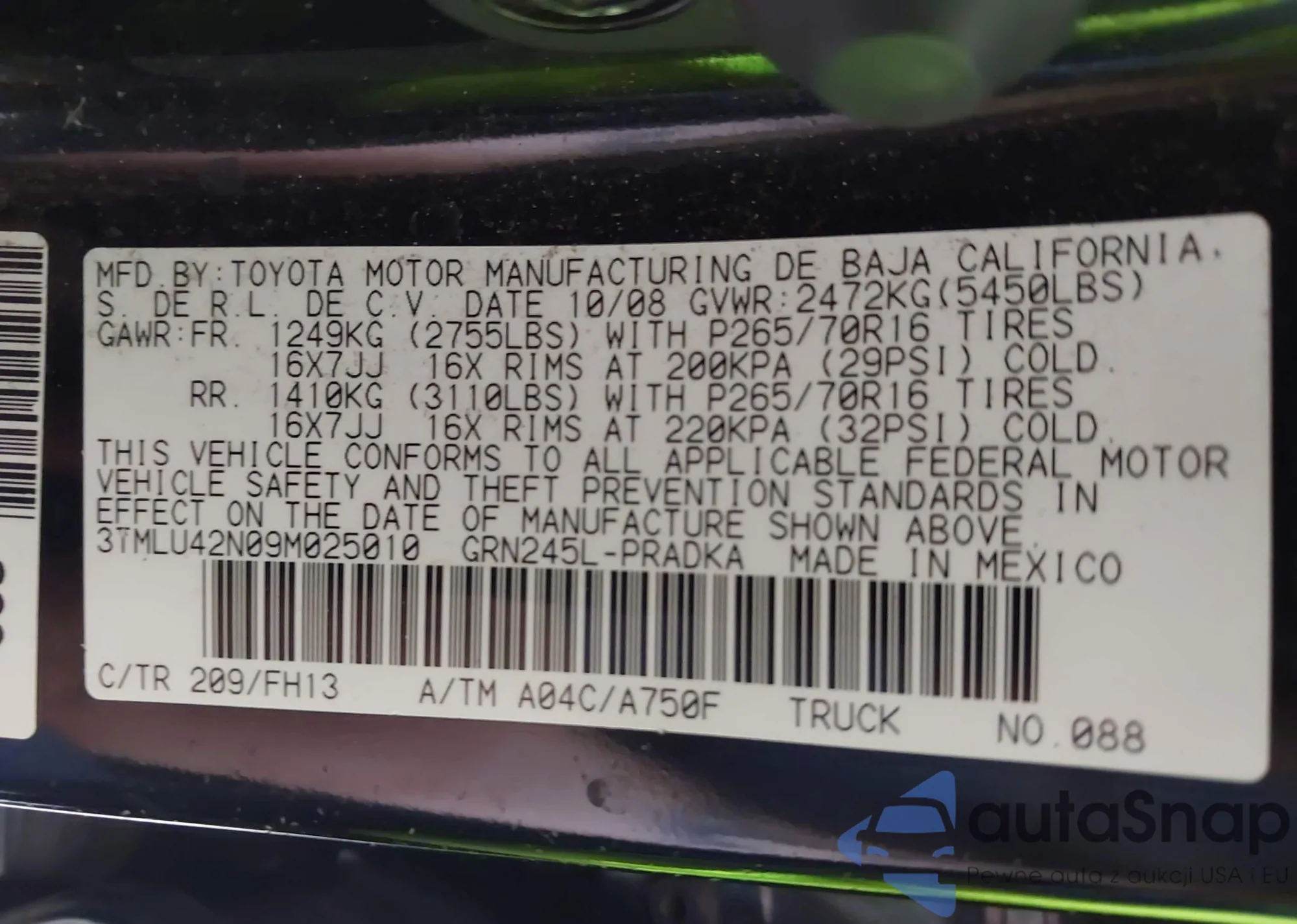 LOT: 43007148 VIN: 3TMLU42N09M025010