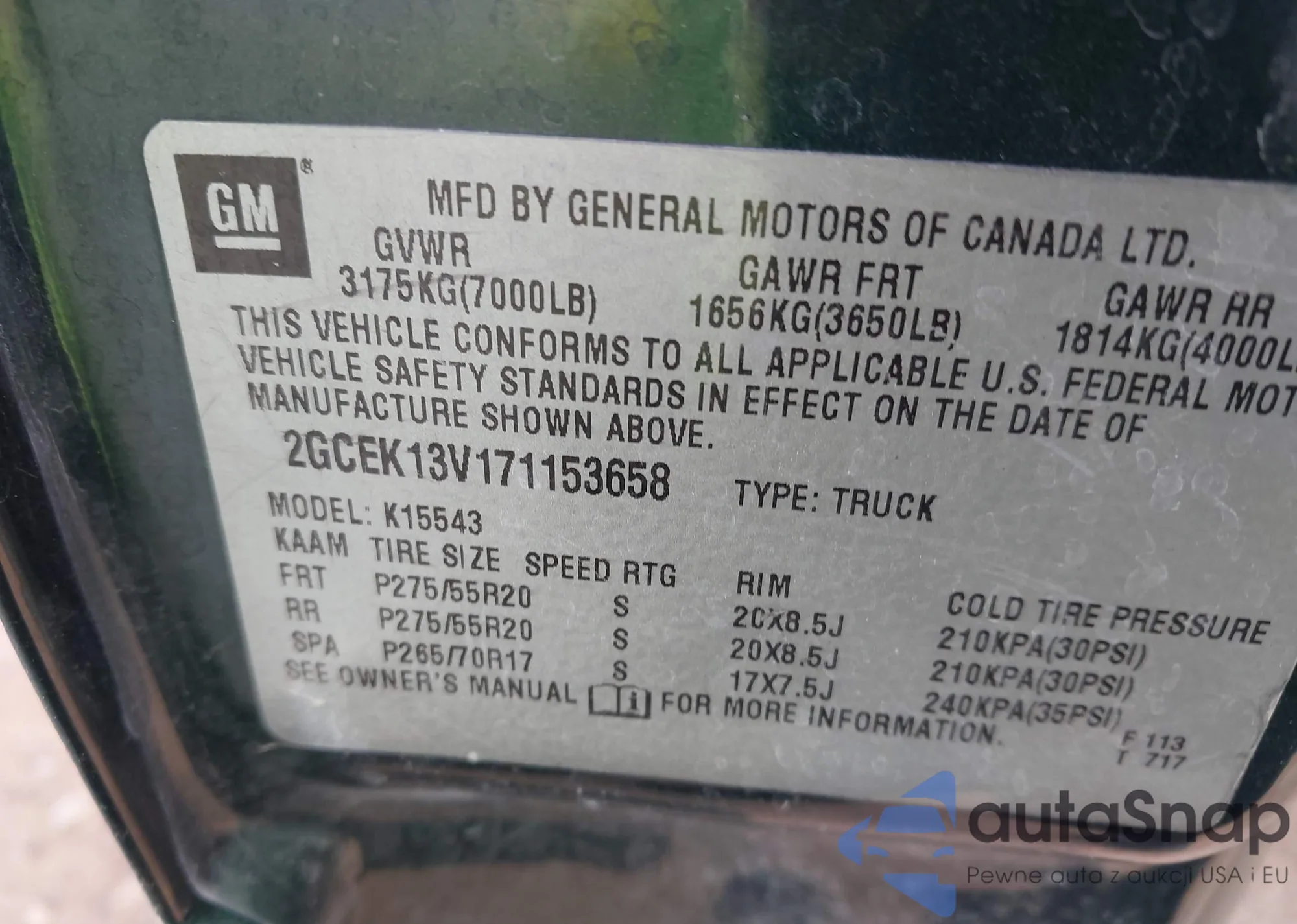 • VIN 2GCEK13V171153658