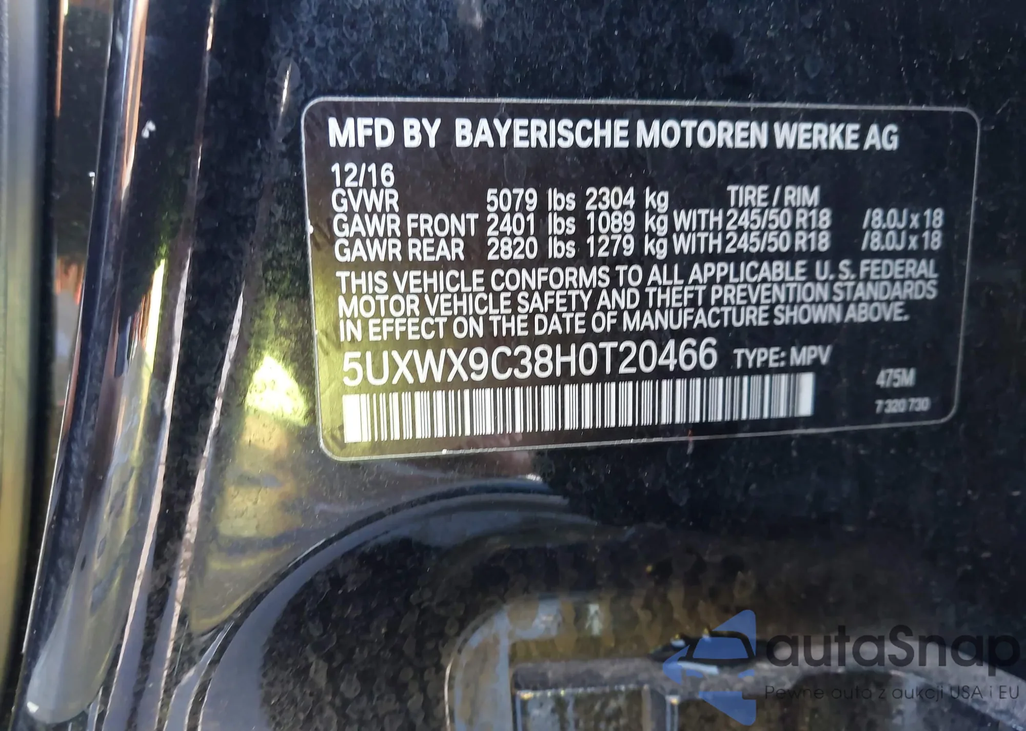 LOT: 42205187 VIN: 5UXWX9C38H0T20466