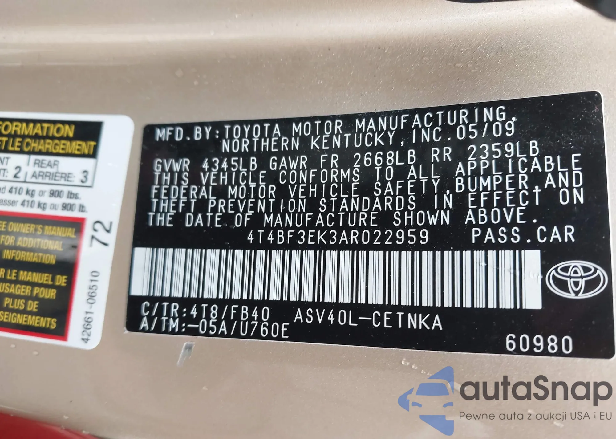 • VIN 2T3WFREV5DW041338