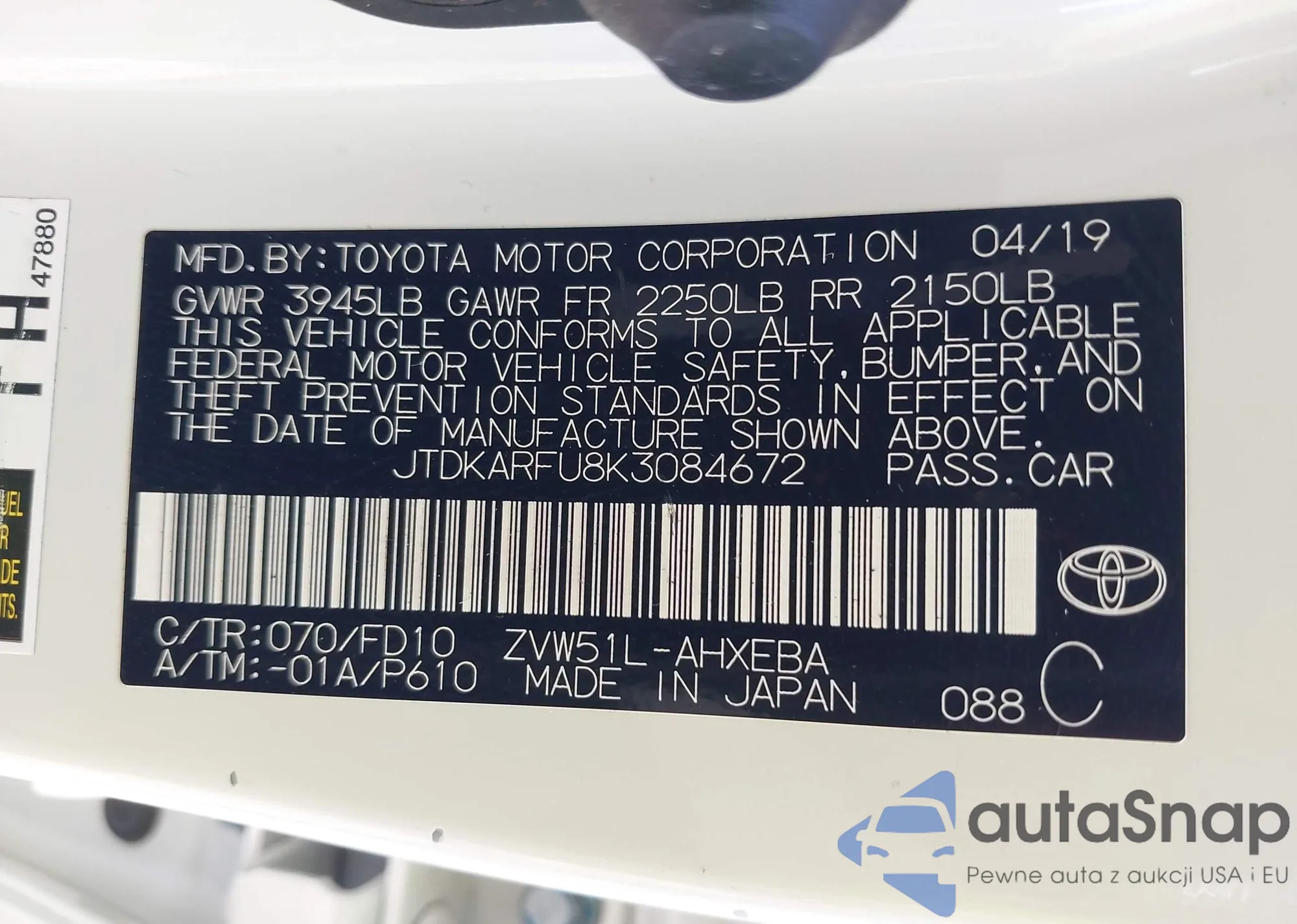 • VIN JTDKTUD31DD561382