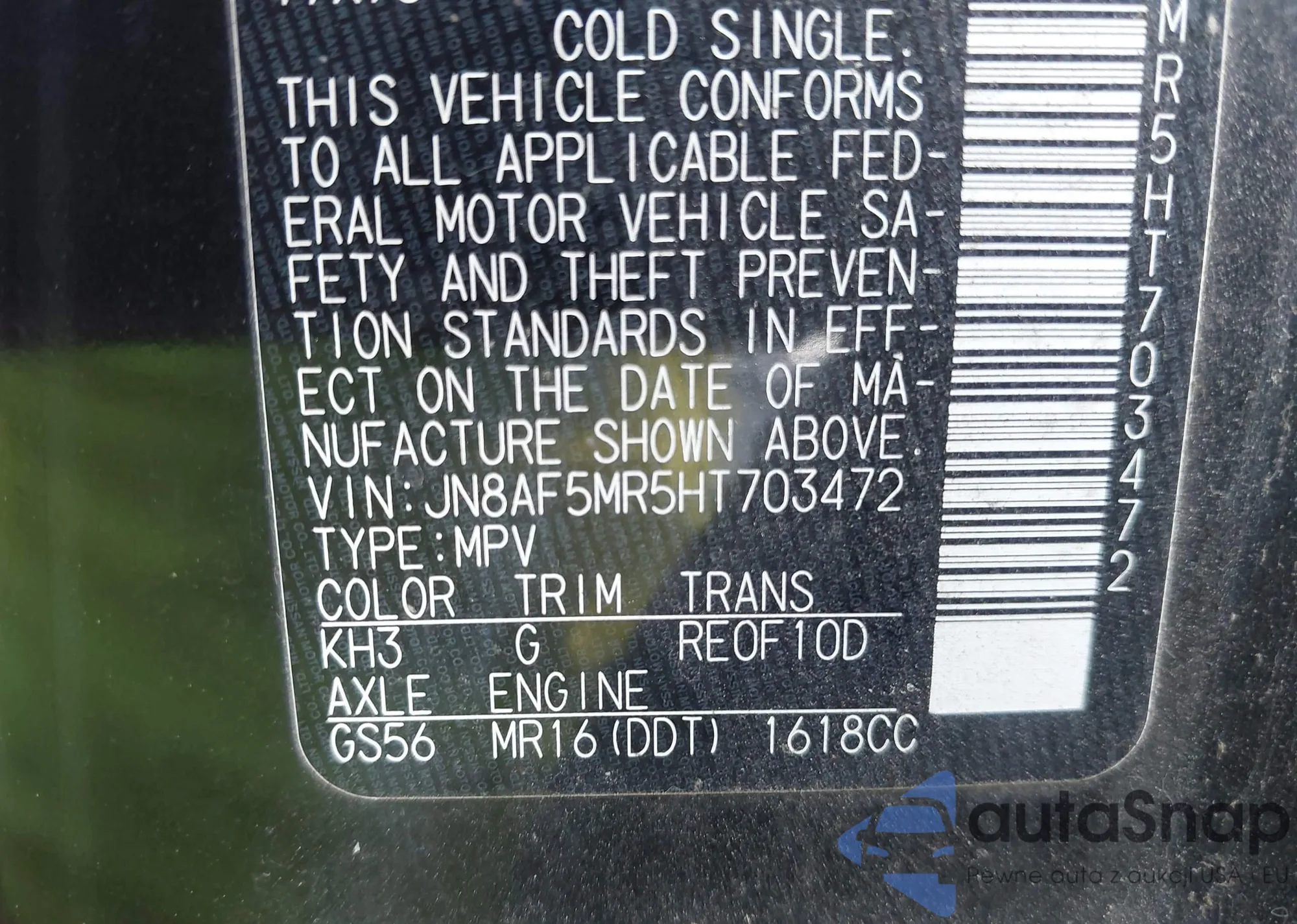 • VIN JN8AF5MR5HT703472