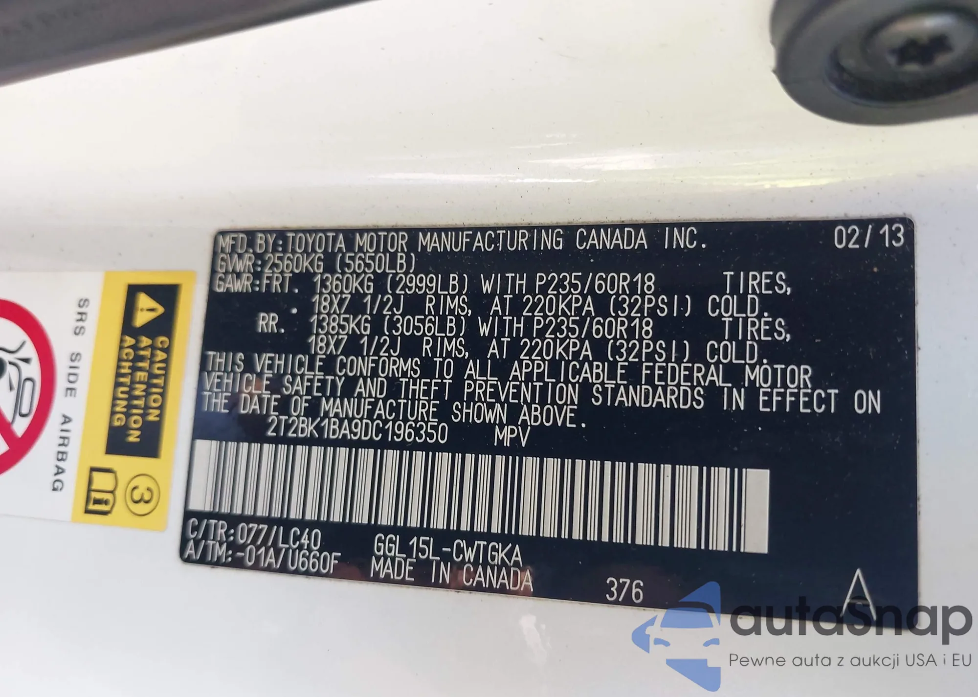 LOT: 42848380 VIN: 2T3WFREV5DW041338