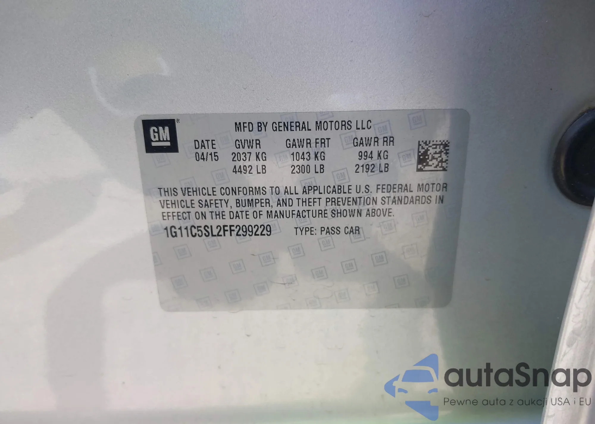 LOT: 42996254 VIN: 1G11C5SL2FF299229