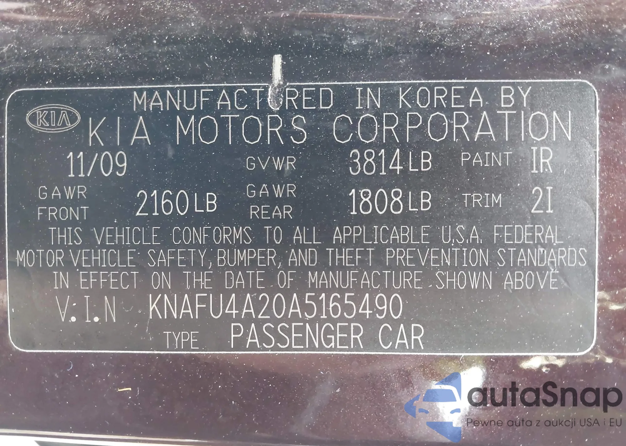 • VIN KNAFU4A20A5165490