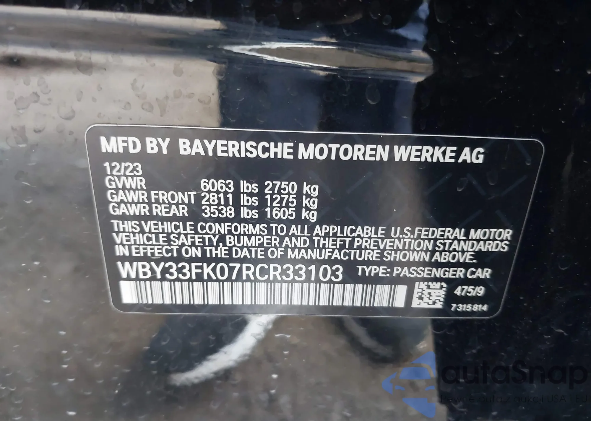 • VIN WBY33FK07RCR33103