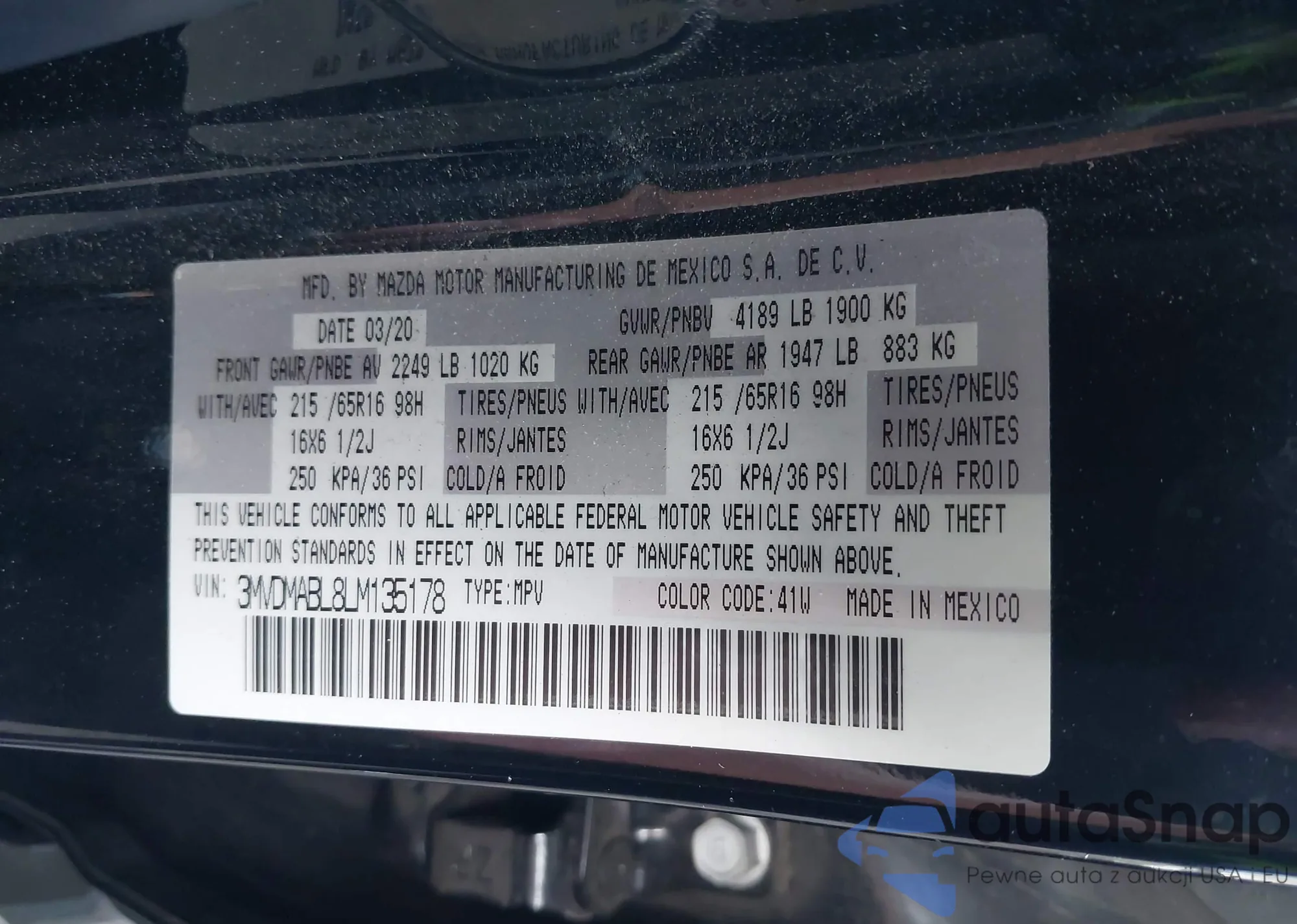 • VIN 3MVDMABL8LM135178