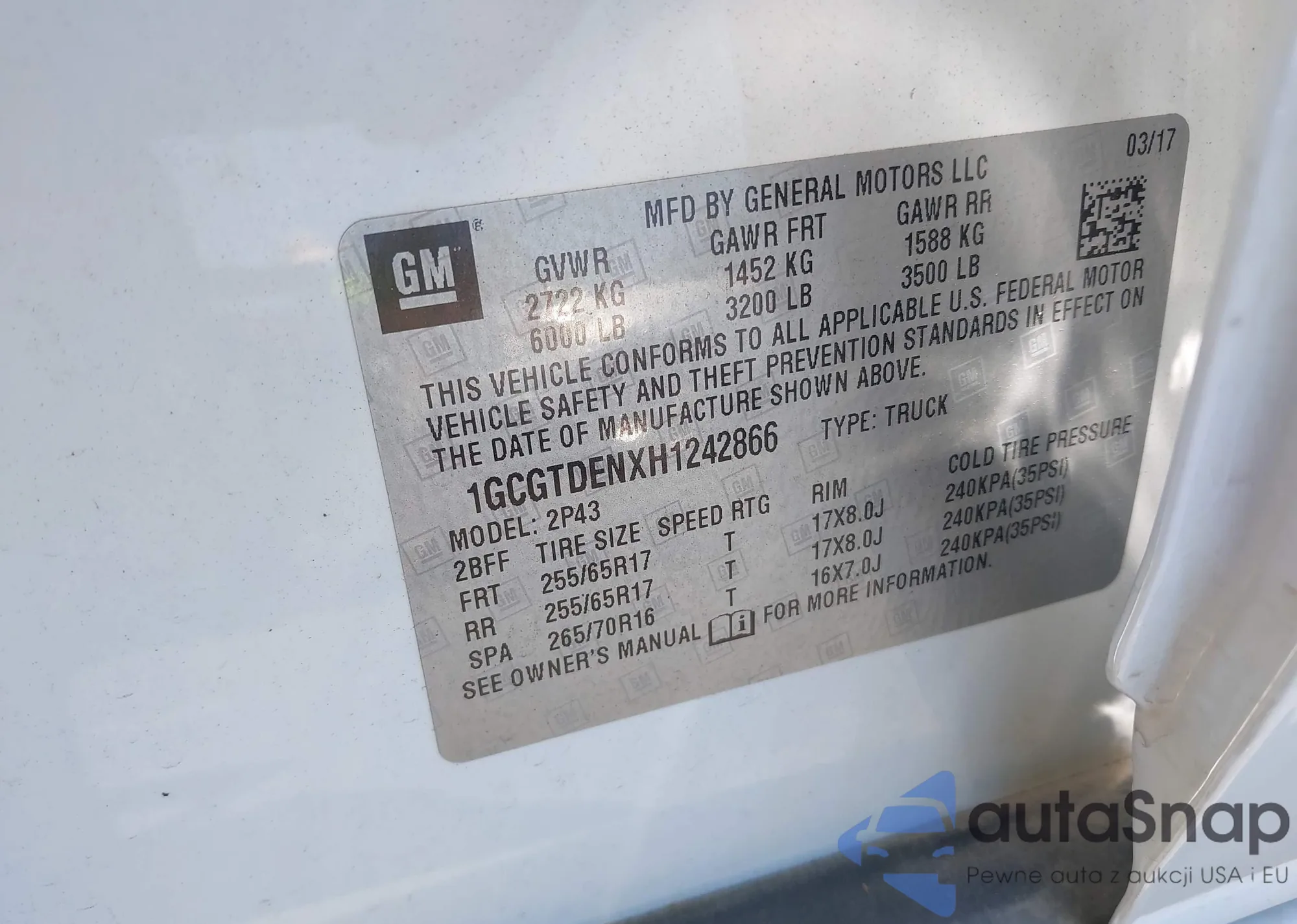 • VIN 1GCGTDENXH1242866