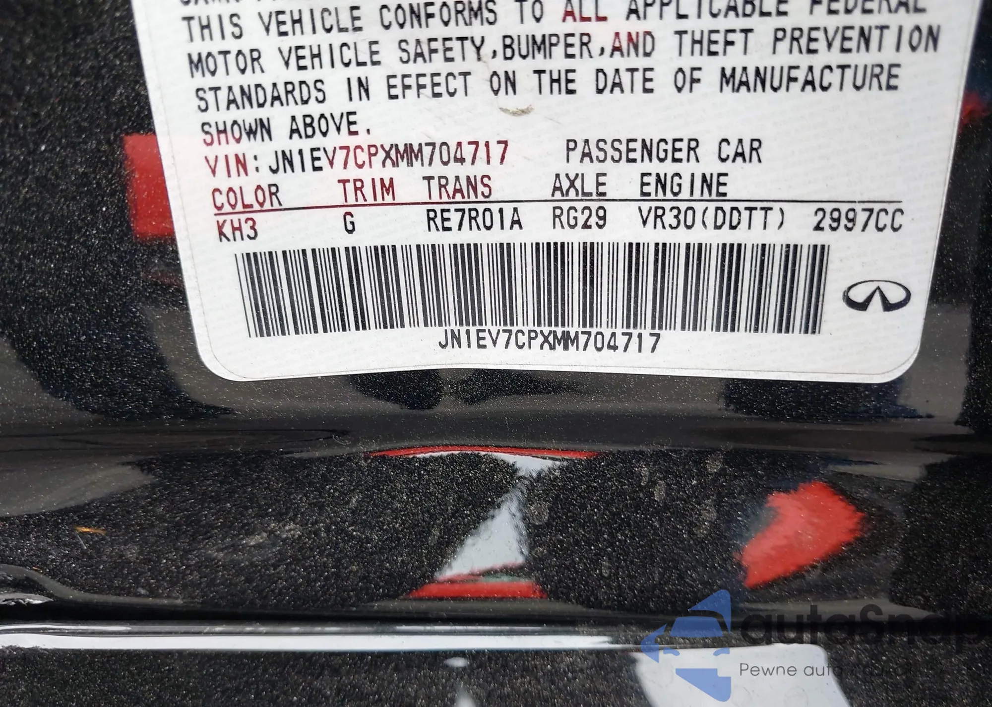 LOT: 70413425 VIN: 2HGFC1F3XMH704959