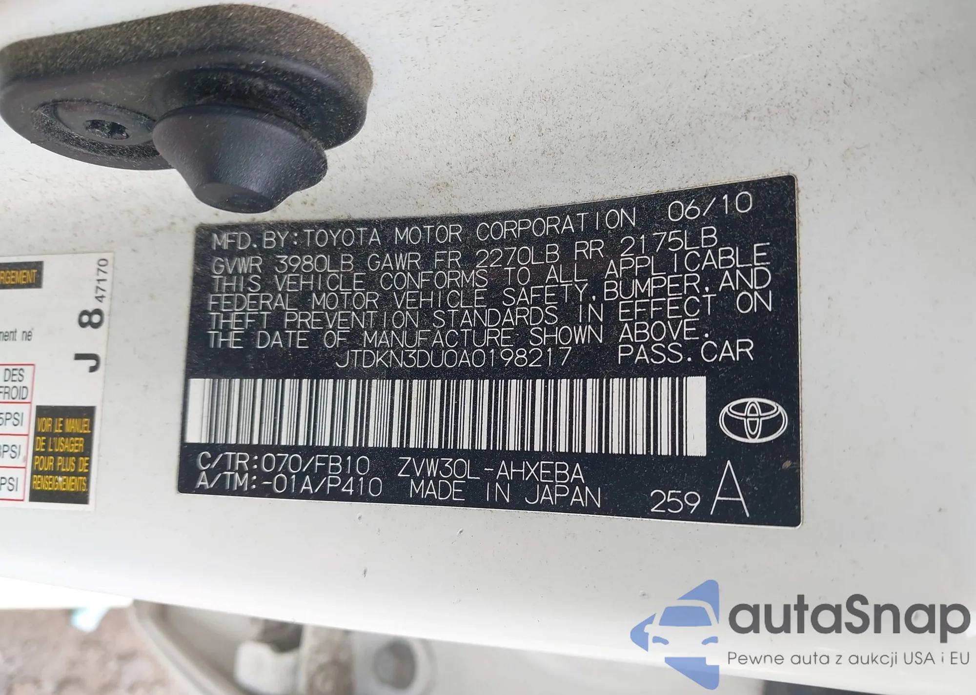 LOT: 43006427 VIN: JTDKN3DU0A0198217