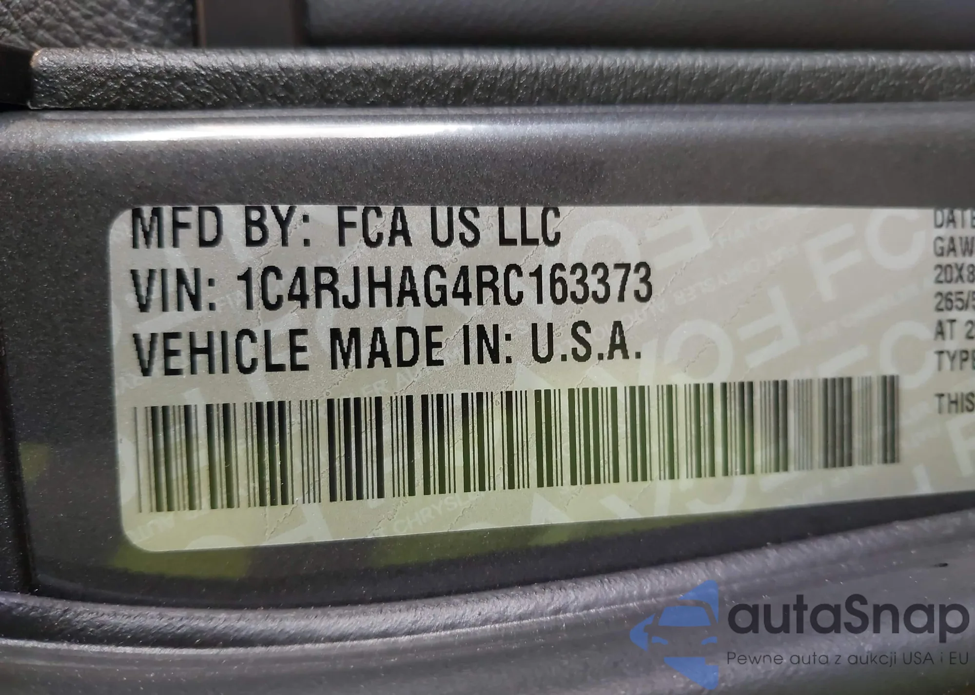 • VIN 1C4RJHAG4RC163373
