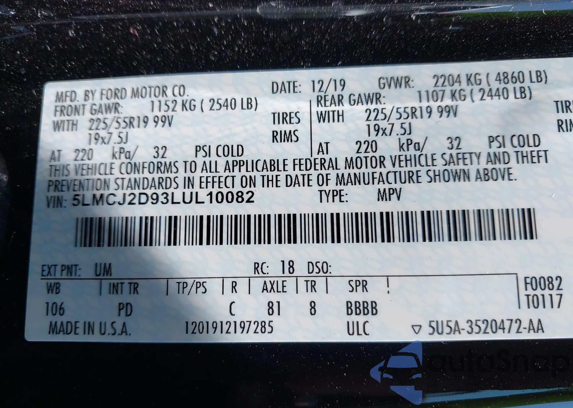• VIN 5LMCJ2D93LUL10082