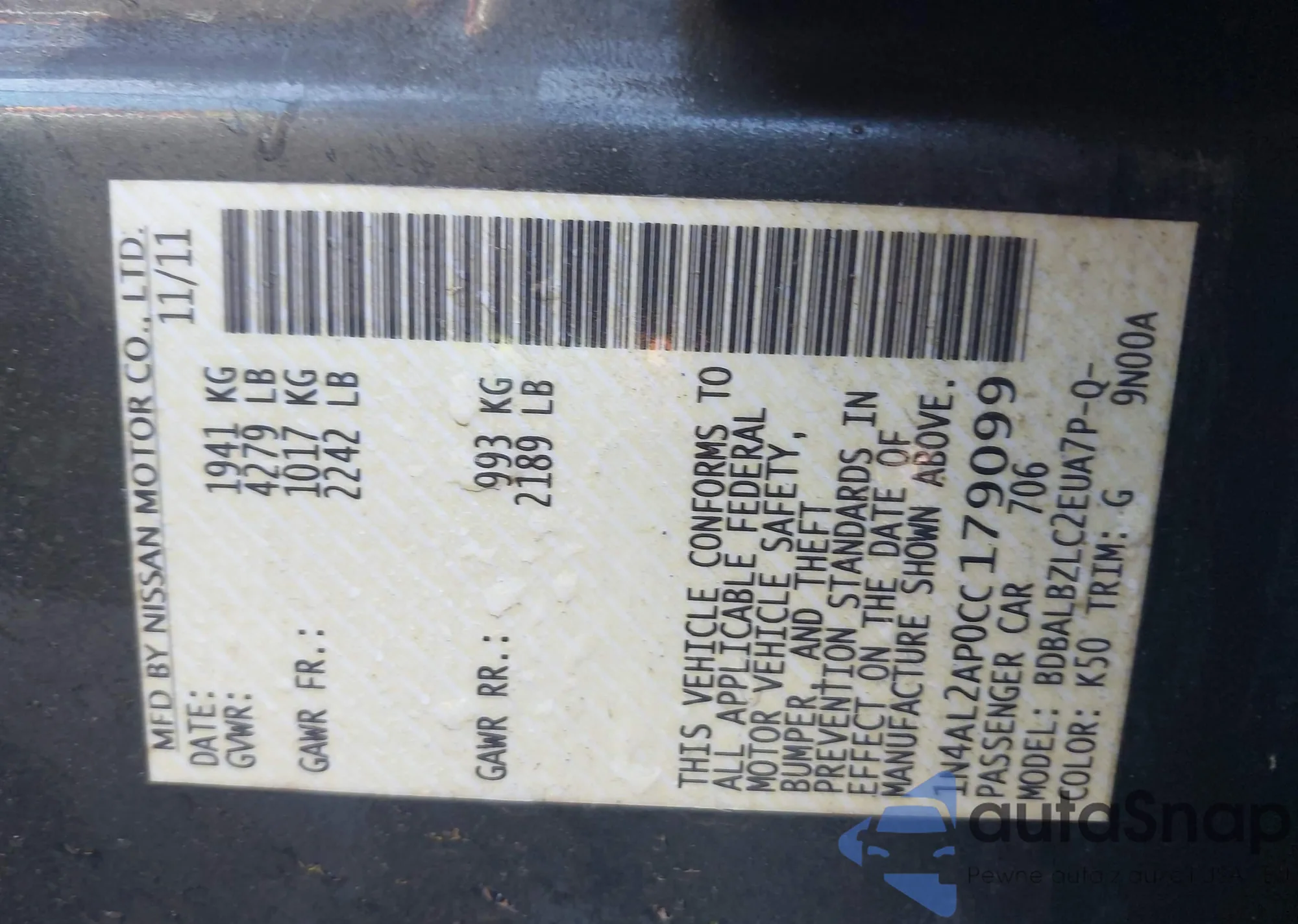 LOT: 42814935 VIN: 1G1ZA5E09A4104662
