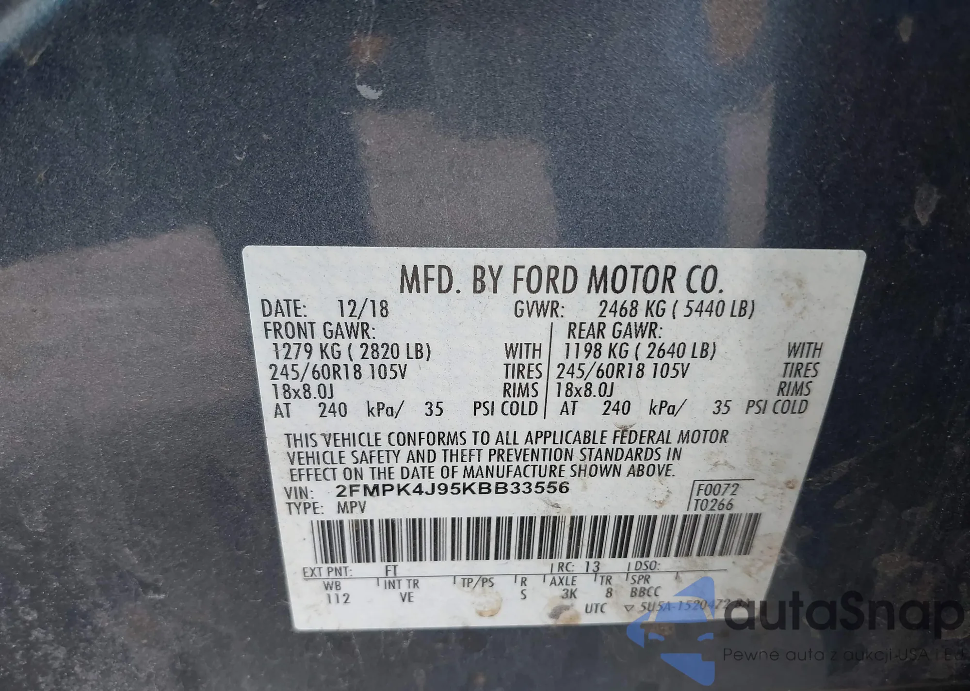 • VIN 2FMPK4J95KBB33556