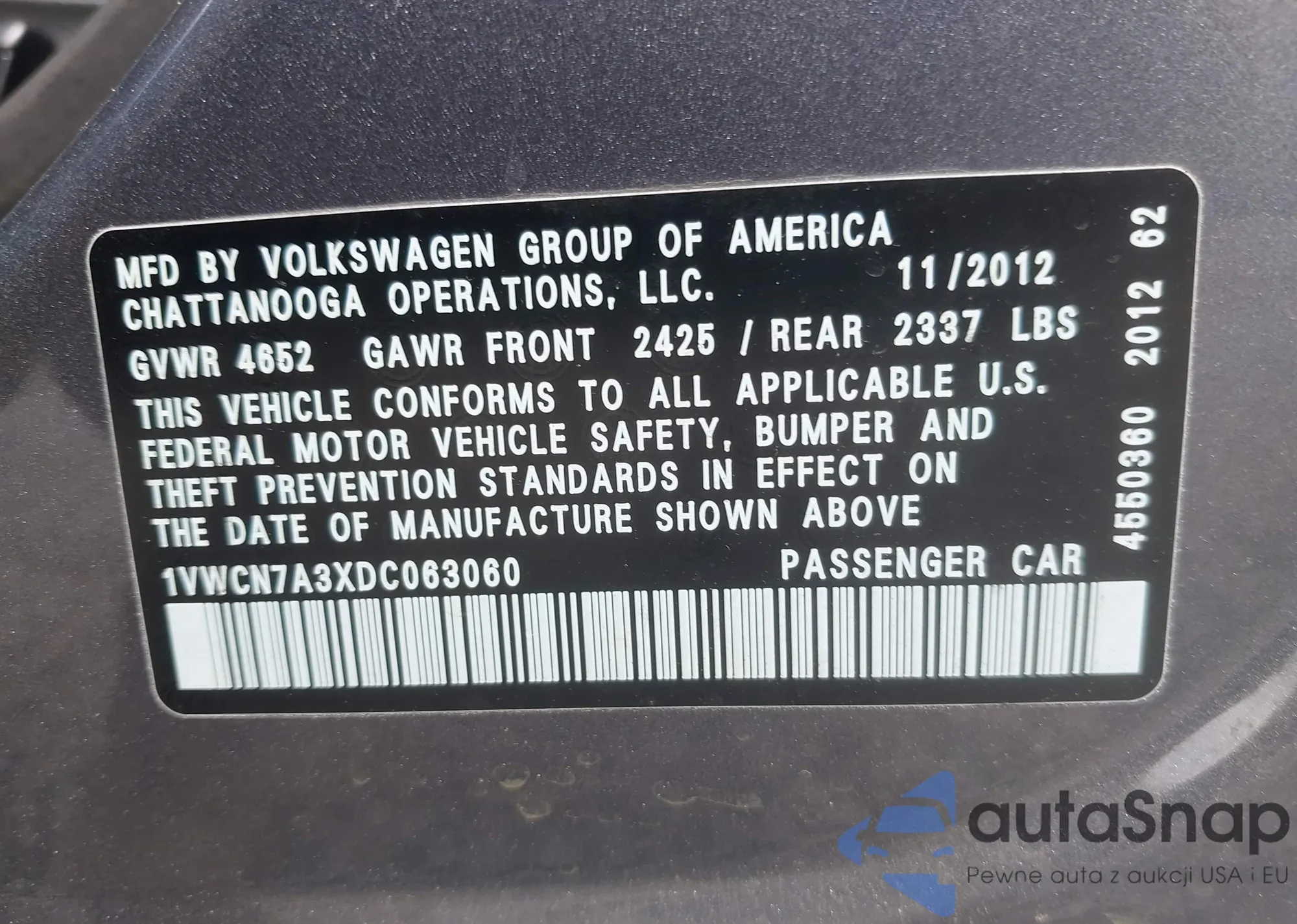 • VIN 1VWCN7A3XDC063060