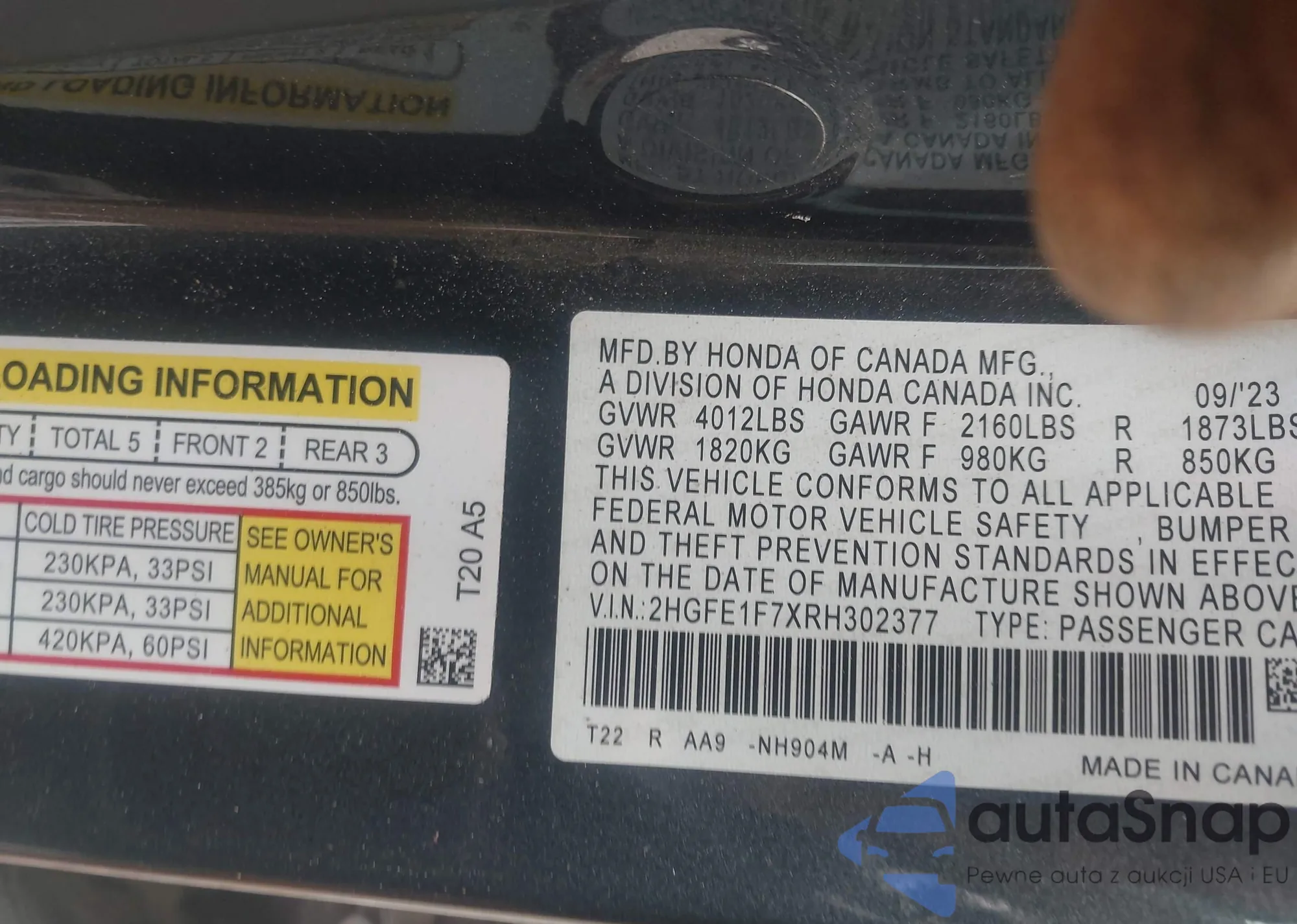 • VIN 2HGFE1F7XRH302377