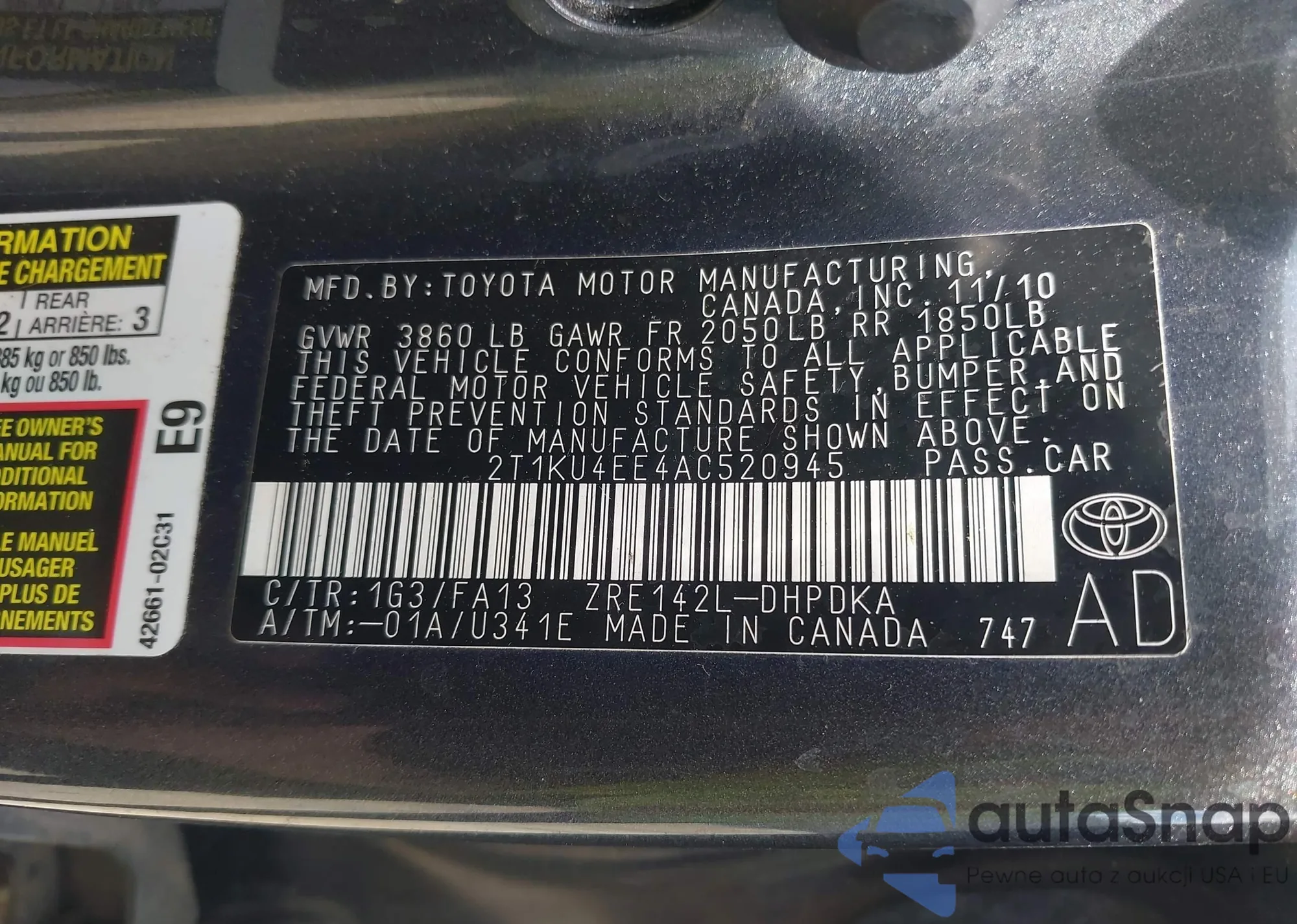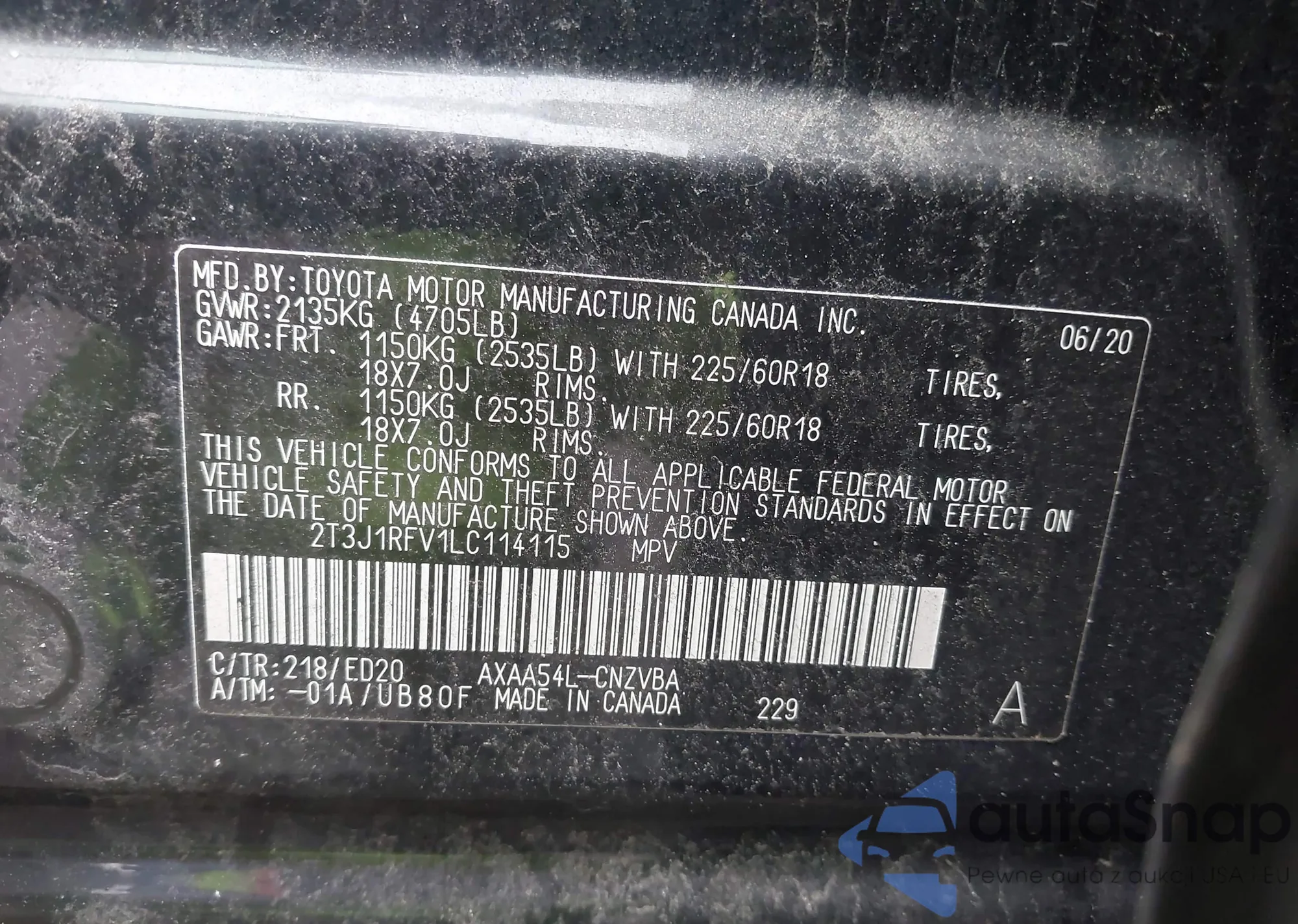 LOT: 42146726 VIN: 2T3J1RFV1LC114115