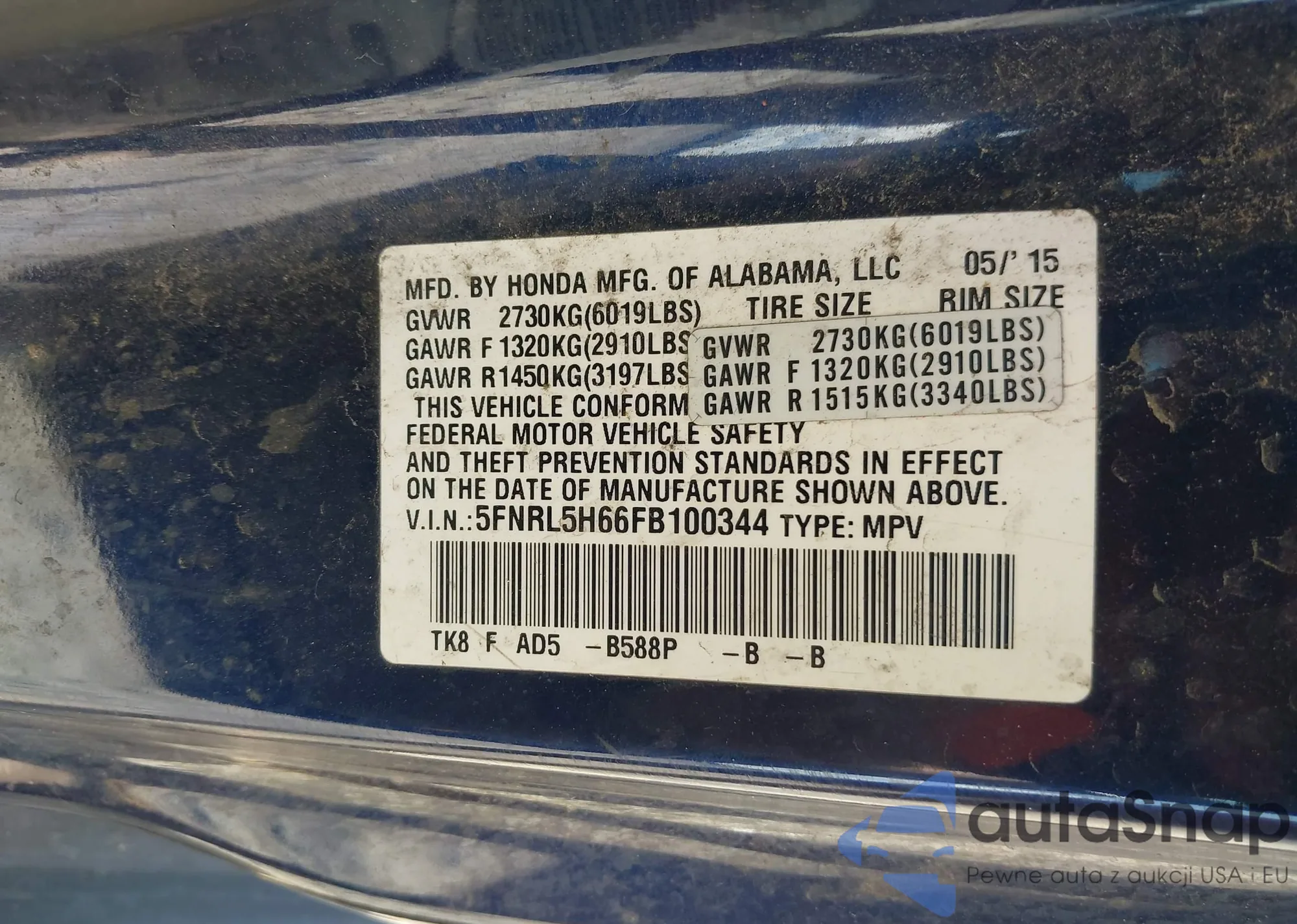 • VIN 5FNRL5H66FB100344