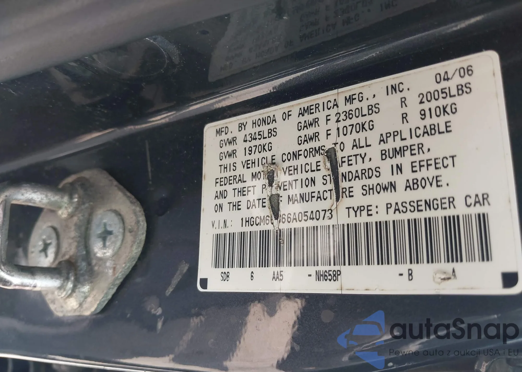 LOT: 42473068 VIN: 1HGCM56756A135269