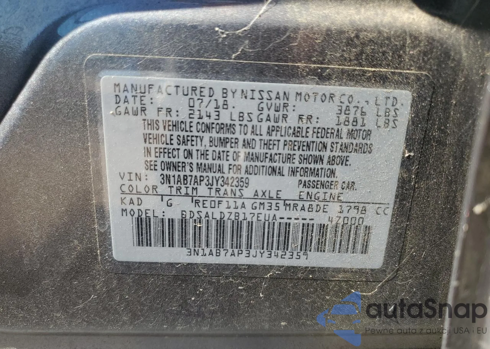 • VIN 3N1AB7AP3JY342359