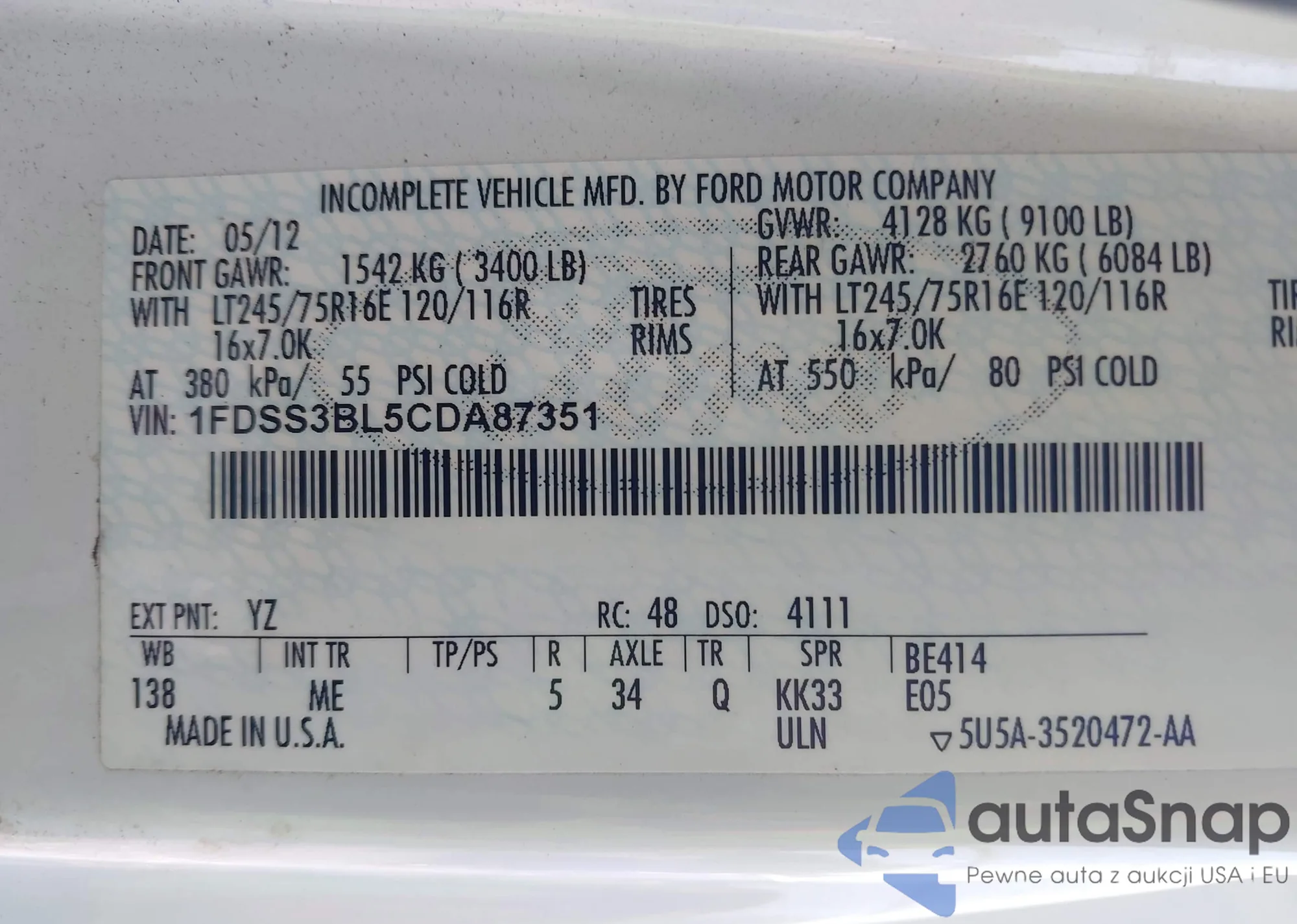LOT: 42739839 VIN: 2FMHK6D82FBA05123