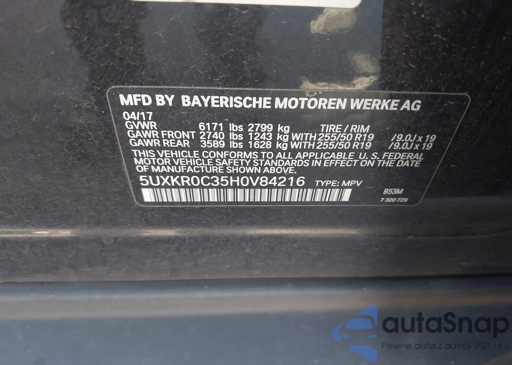 LOT: 42798655 VIN: 5UXKR0C35H0V84216