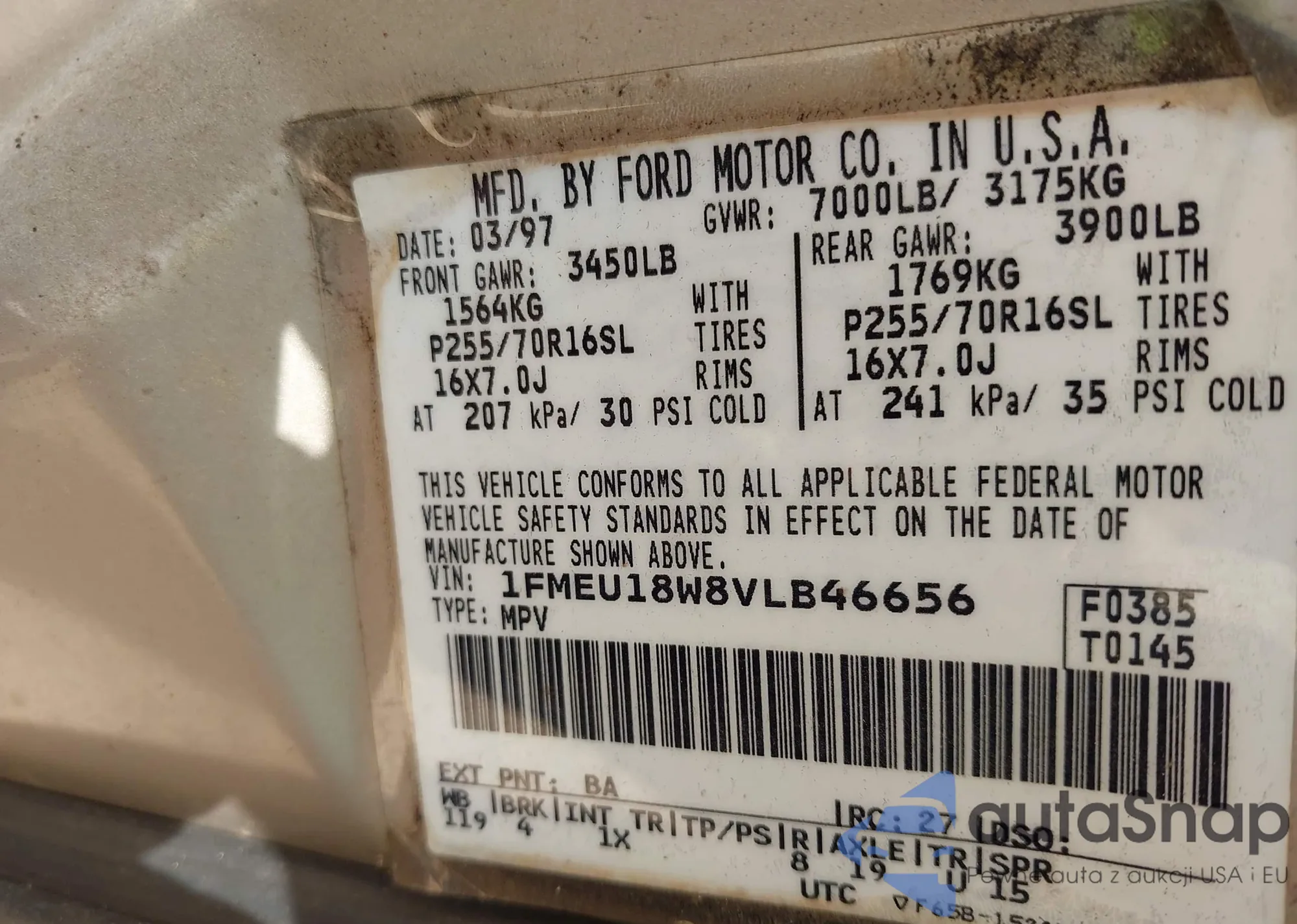 • VIN 1FMEU18W8VLB46656
