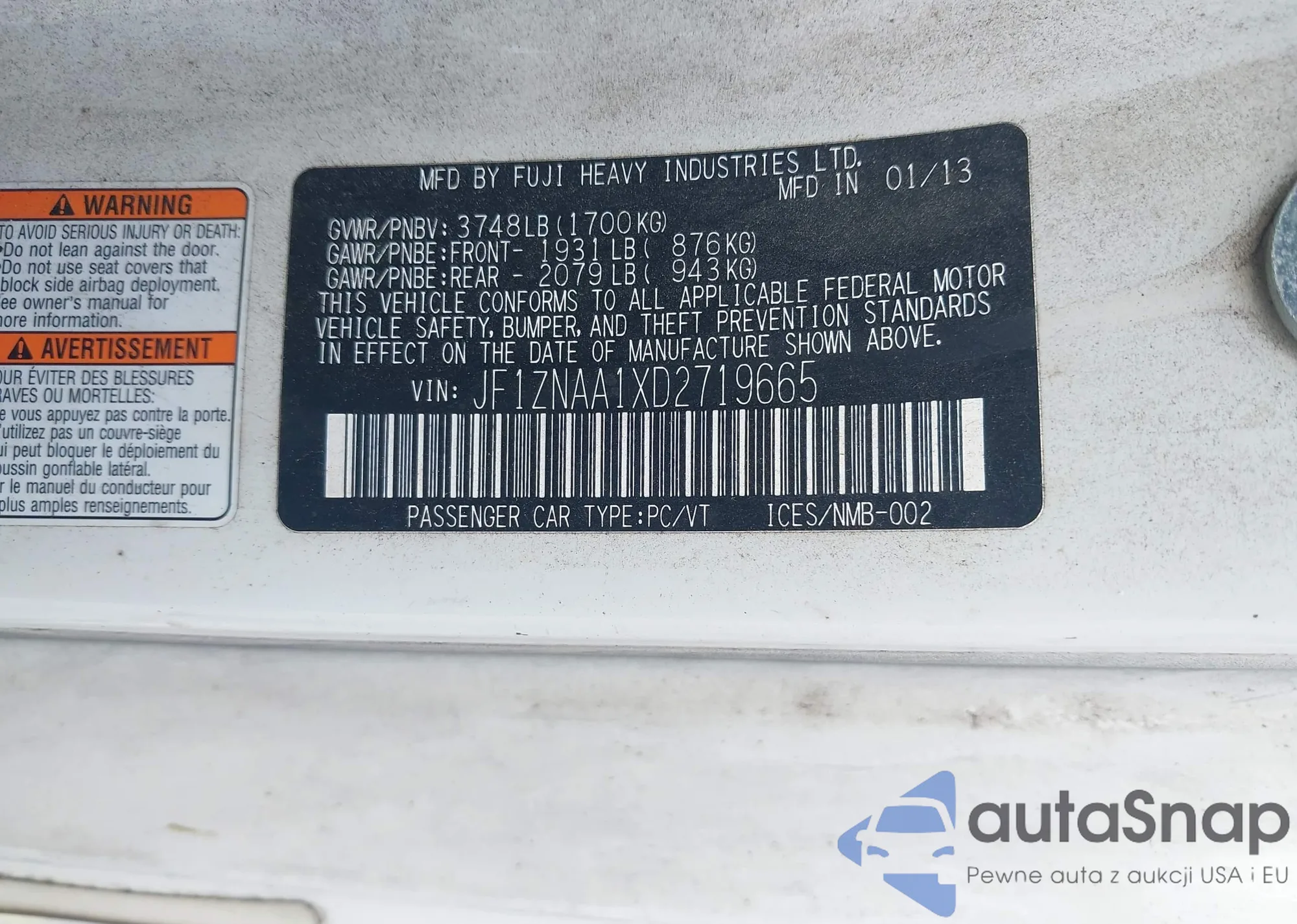 • VIN JF1ZNAA1XD2719665