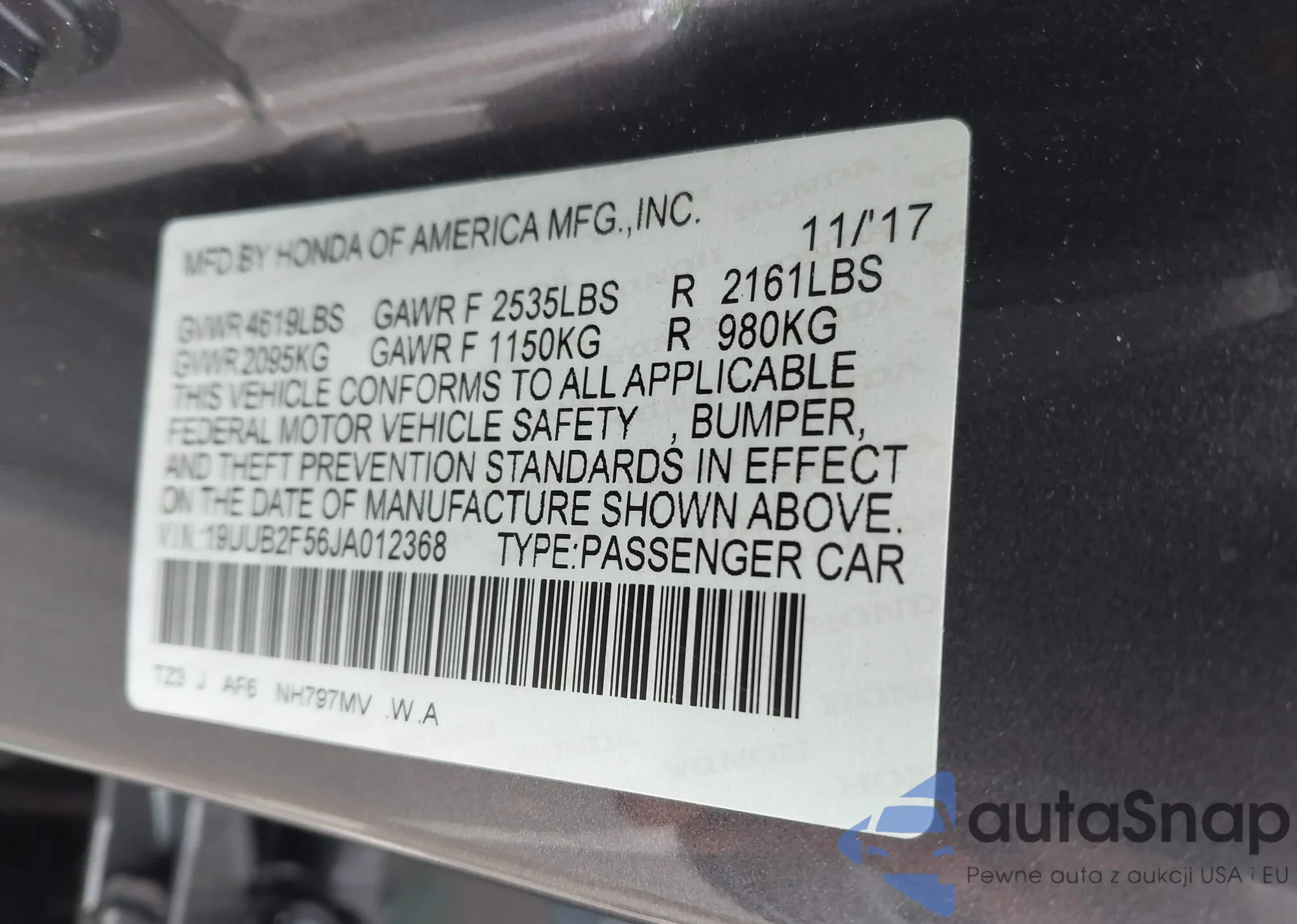 • VIN 19UUB2F56JA012368