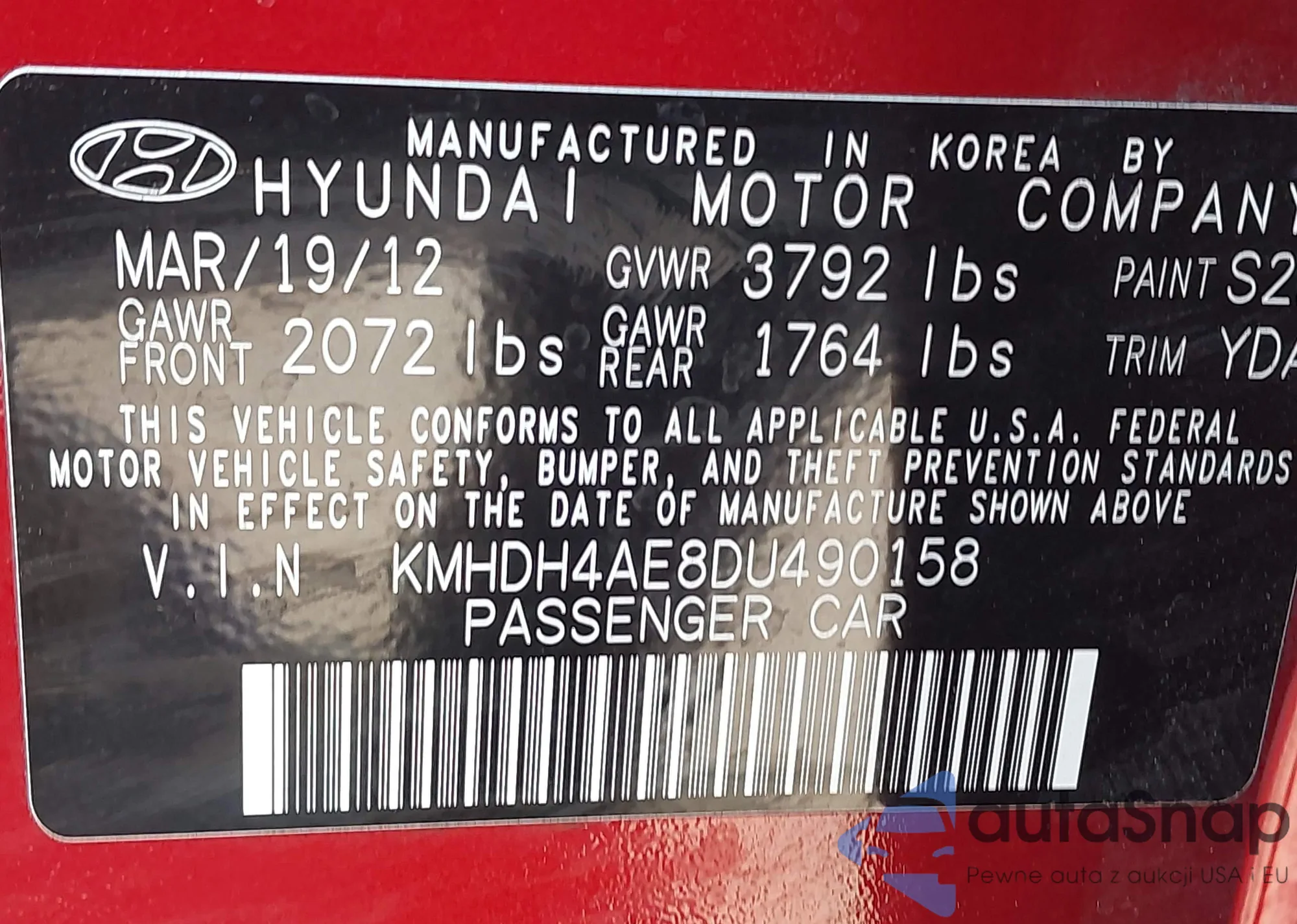 • VIN 2C3CDYAG0DH619974