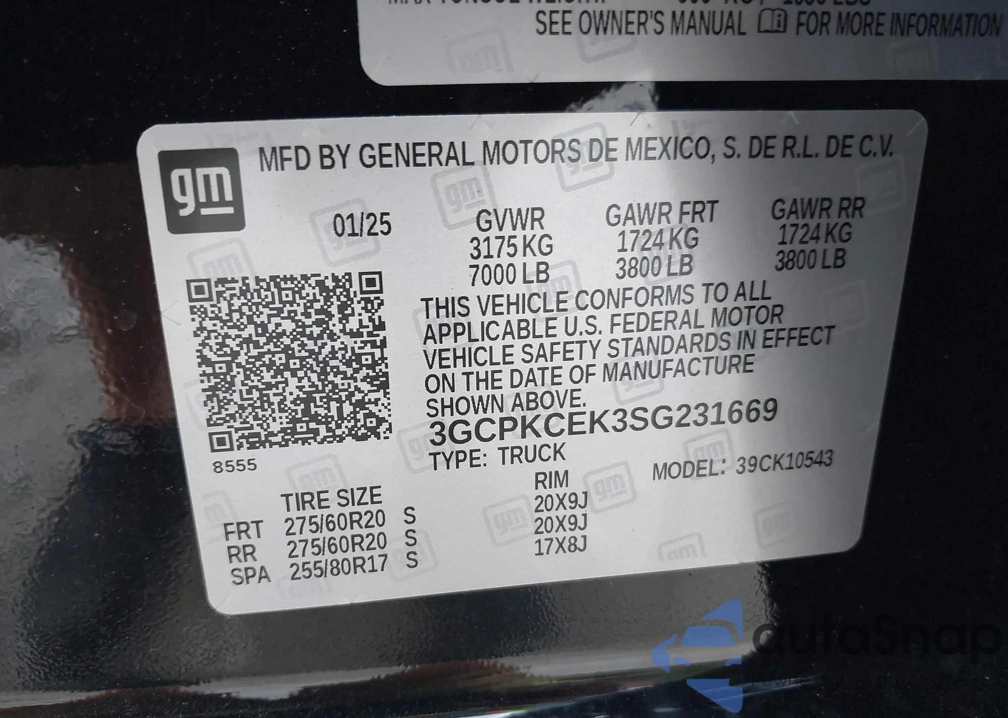 • VIN 3GCPKCEK3SG231669