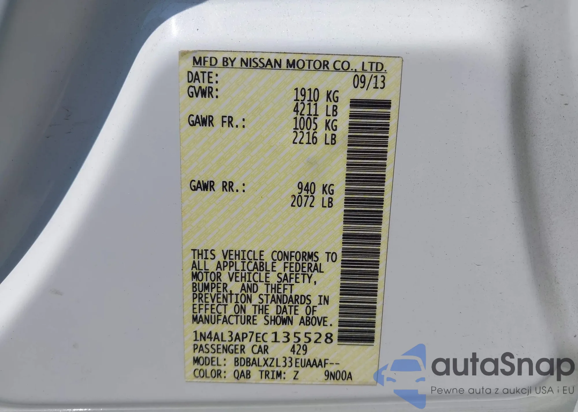 LOT: 42893578 VIN: 1N4AL3AP7EC135528