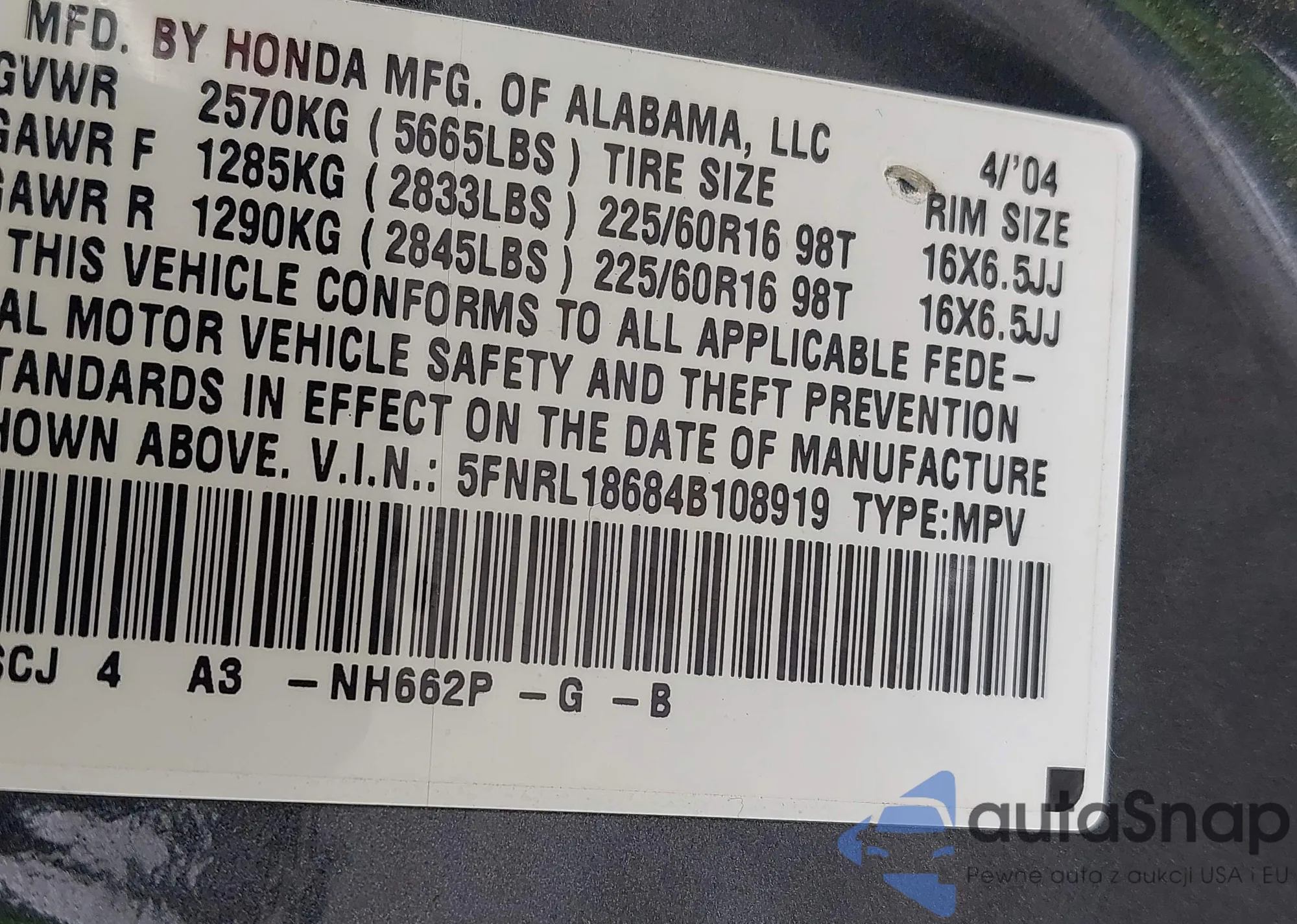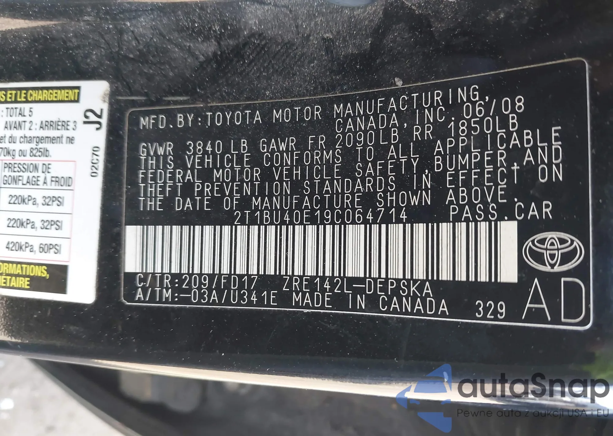 • VIN KL1TG6DE7BB174504