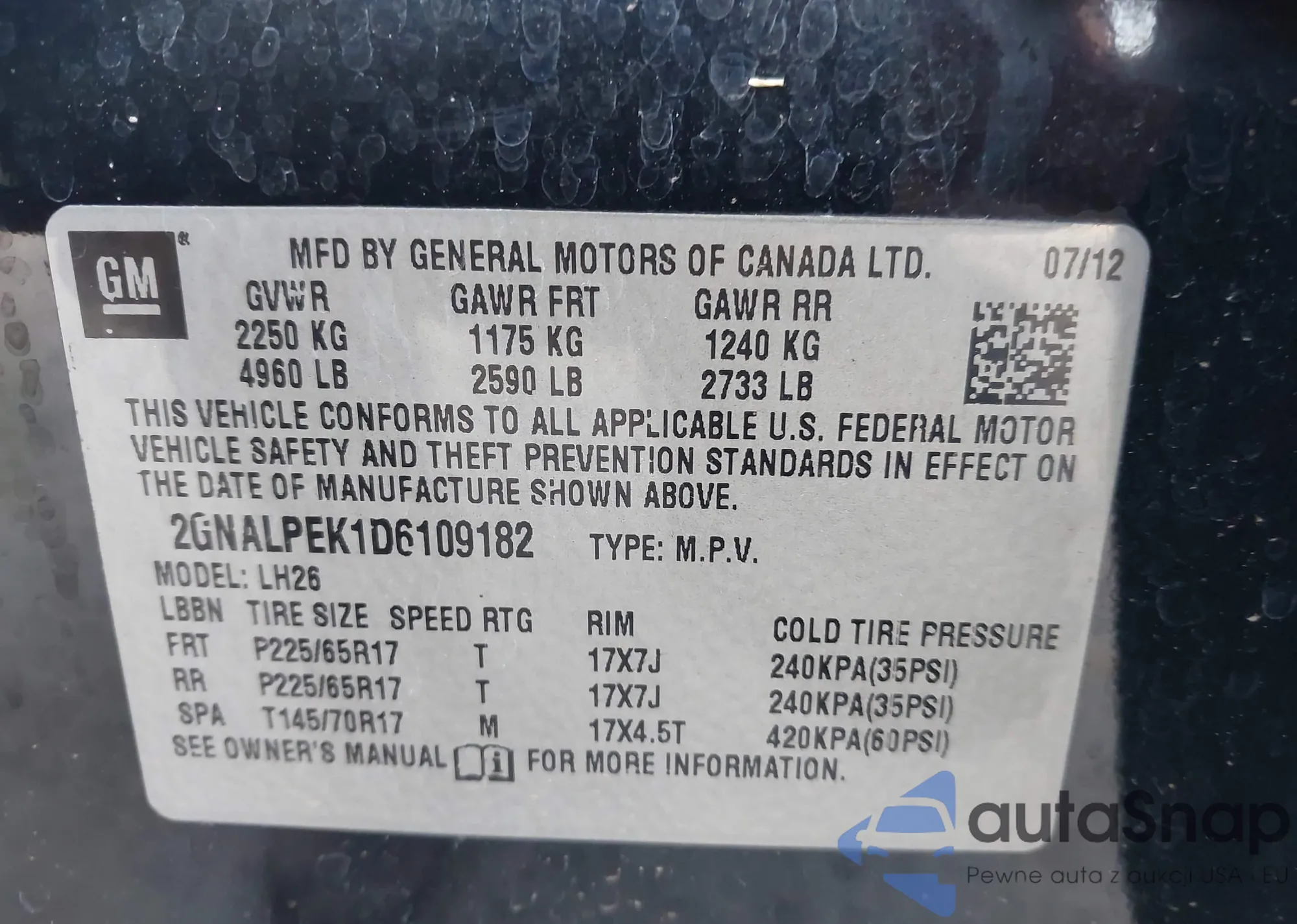 • VIN 2GKFLTE35D6120545