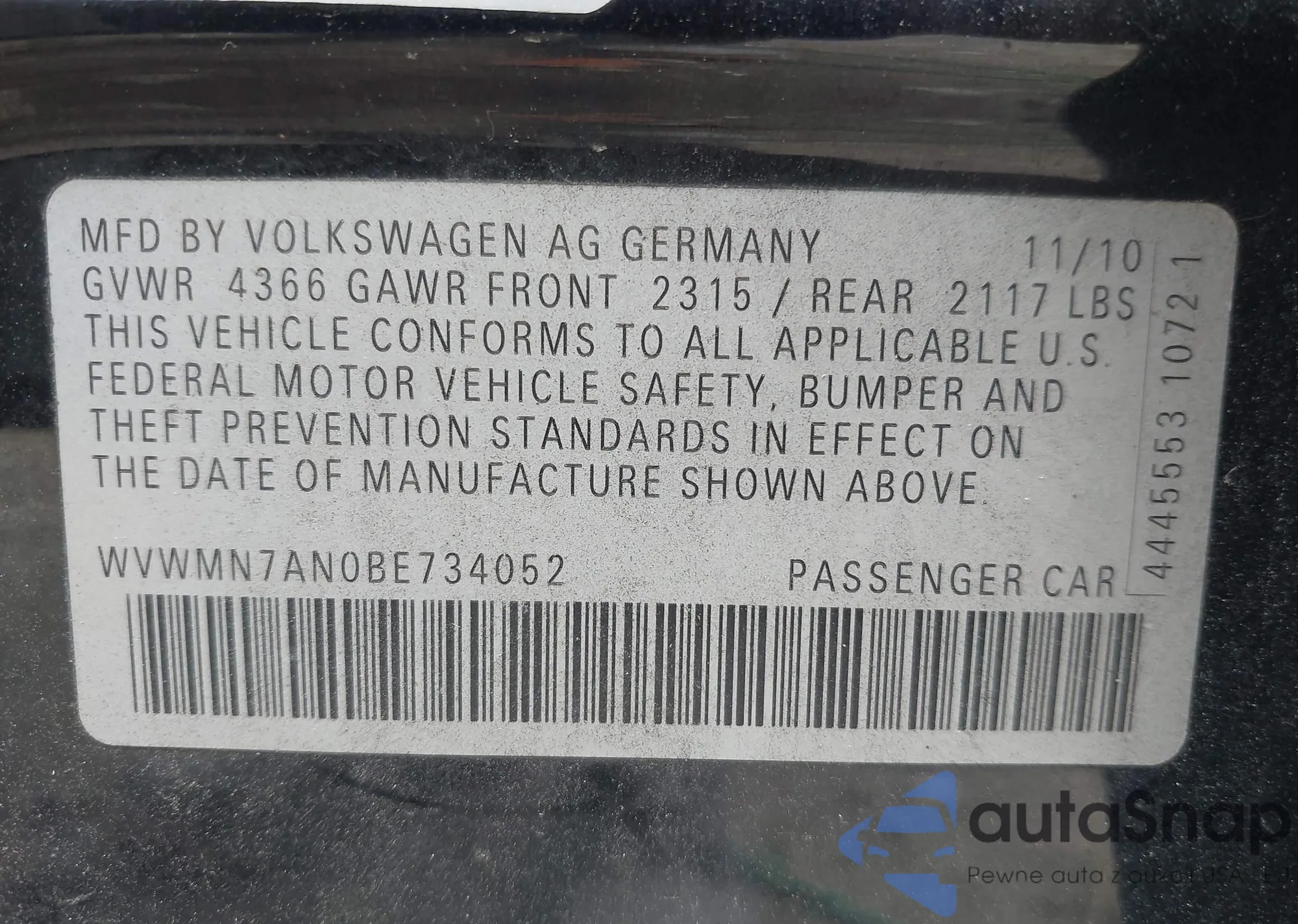 • VIN WVWMN7AN0BE734052